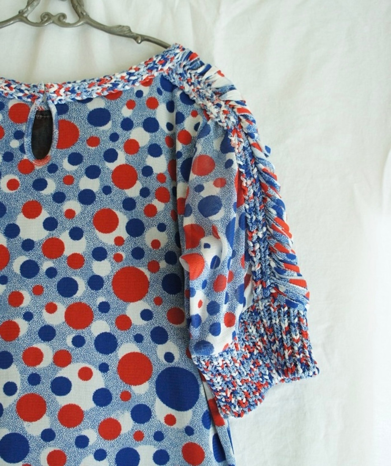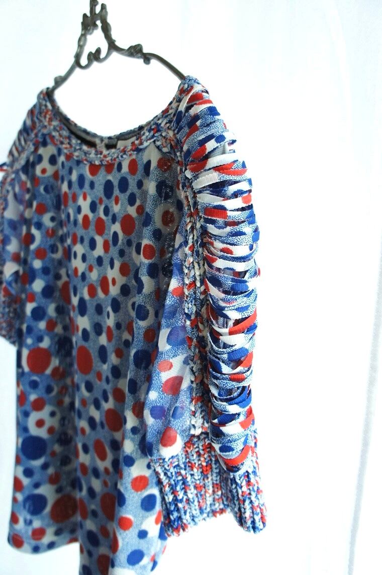 ドット柄で遊び心がありつつ、袖に入ったカットや編み加工がモードな雰囲気。。。