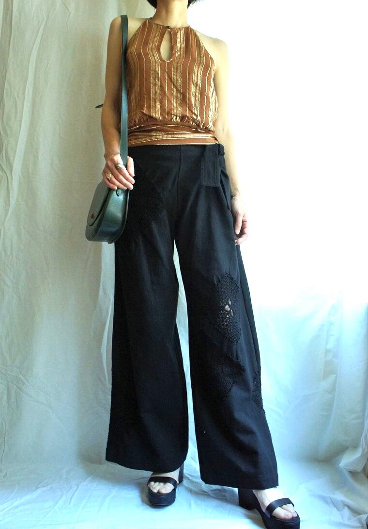 Y's "Crochet" Black Cotton Pants -Dead Stock!-