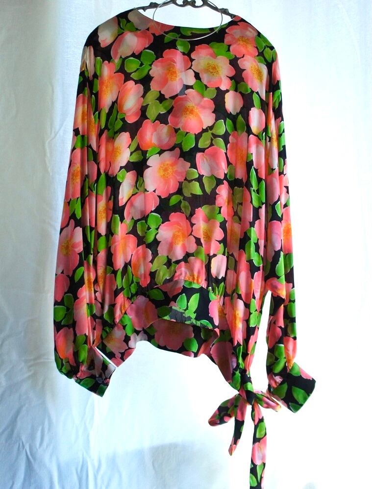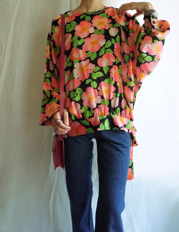 柔らかい透け感あるシルク素材に大判な花柄が潔カッコよさ。。。