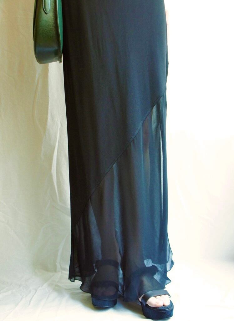 斜めきりかのシアーな足元が色っぽいノースリーブワンピ!