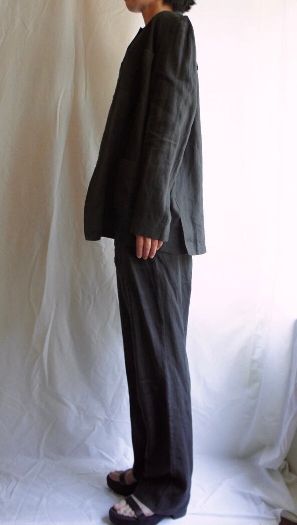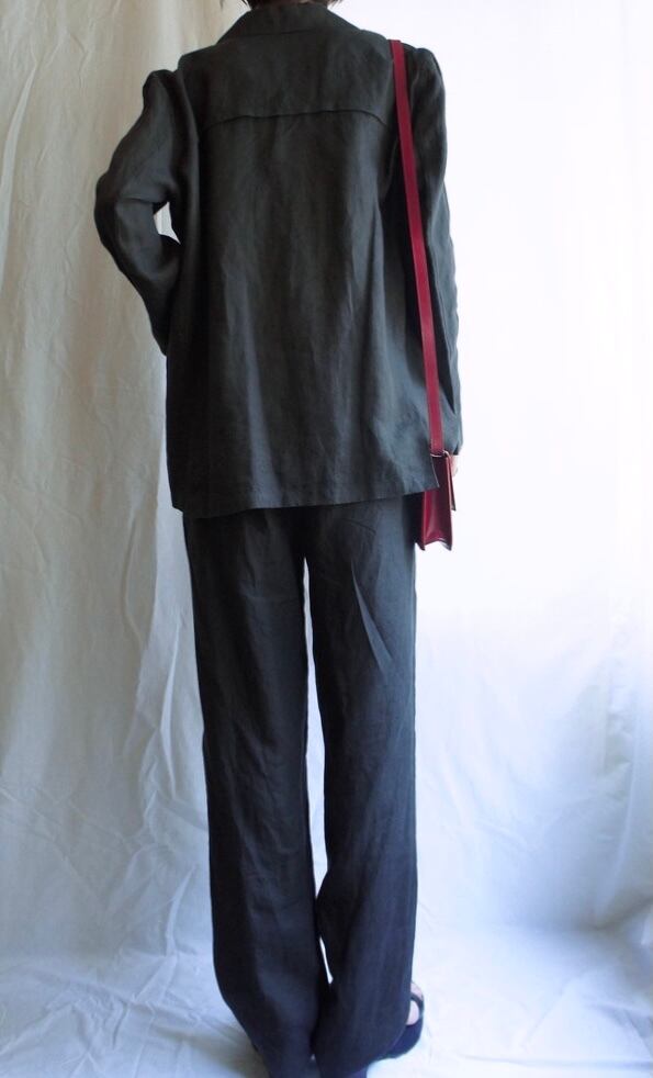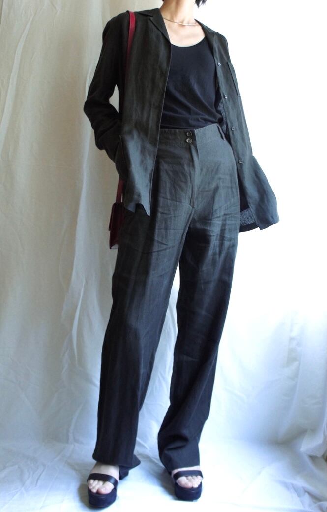 さらっとした薄いリネン素材が涼し気なセットアップ。