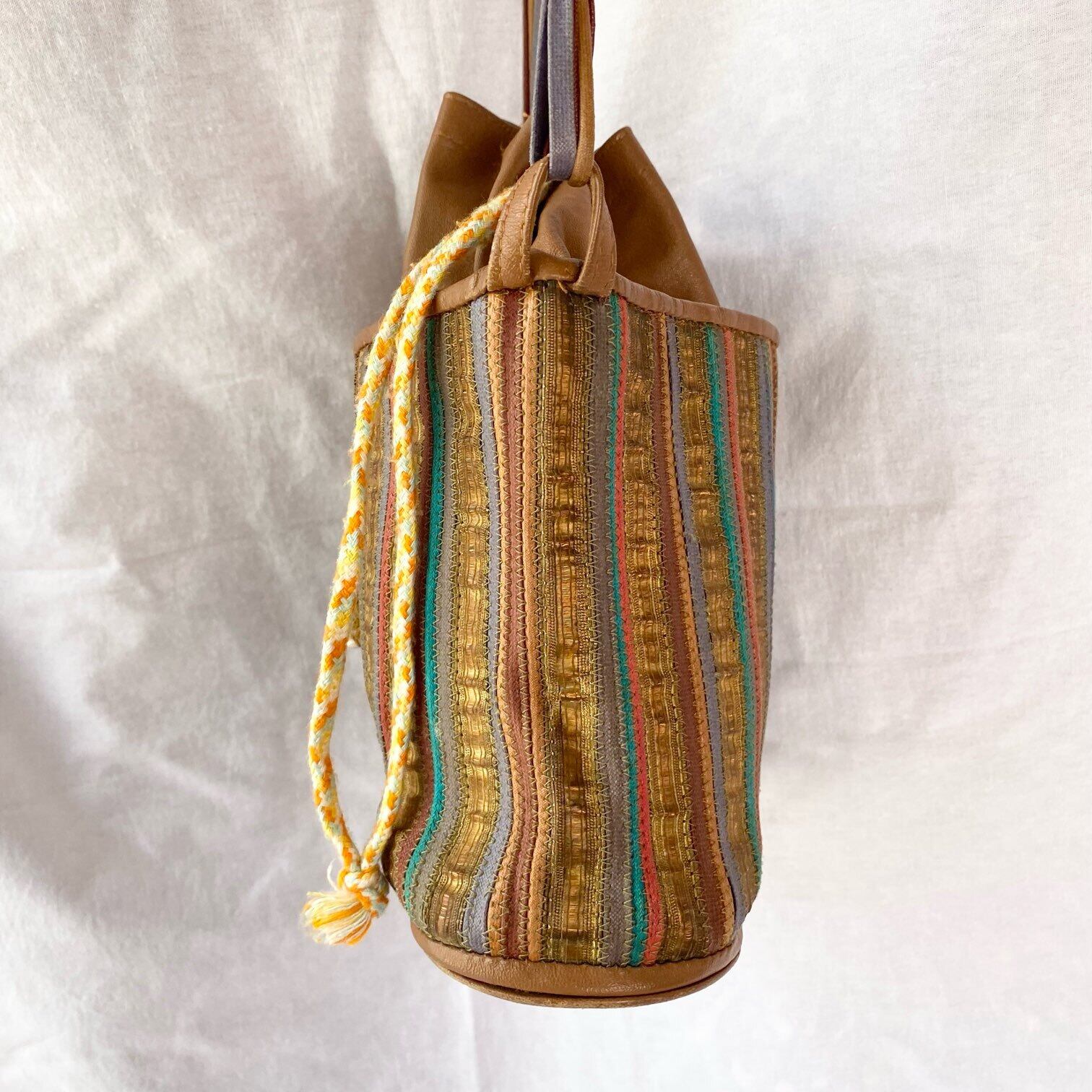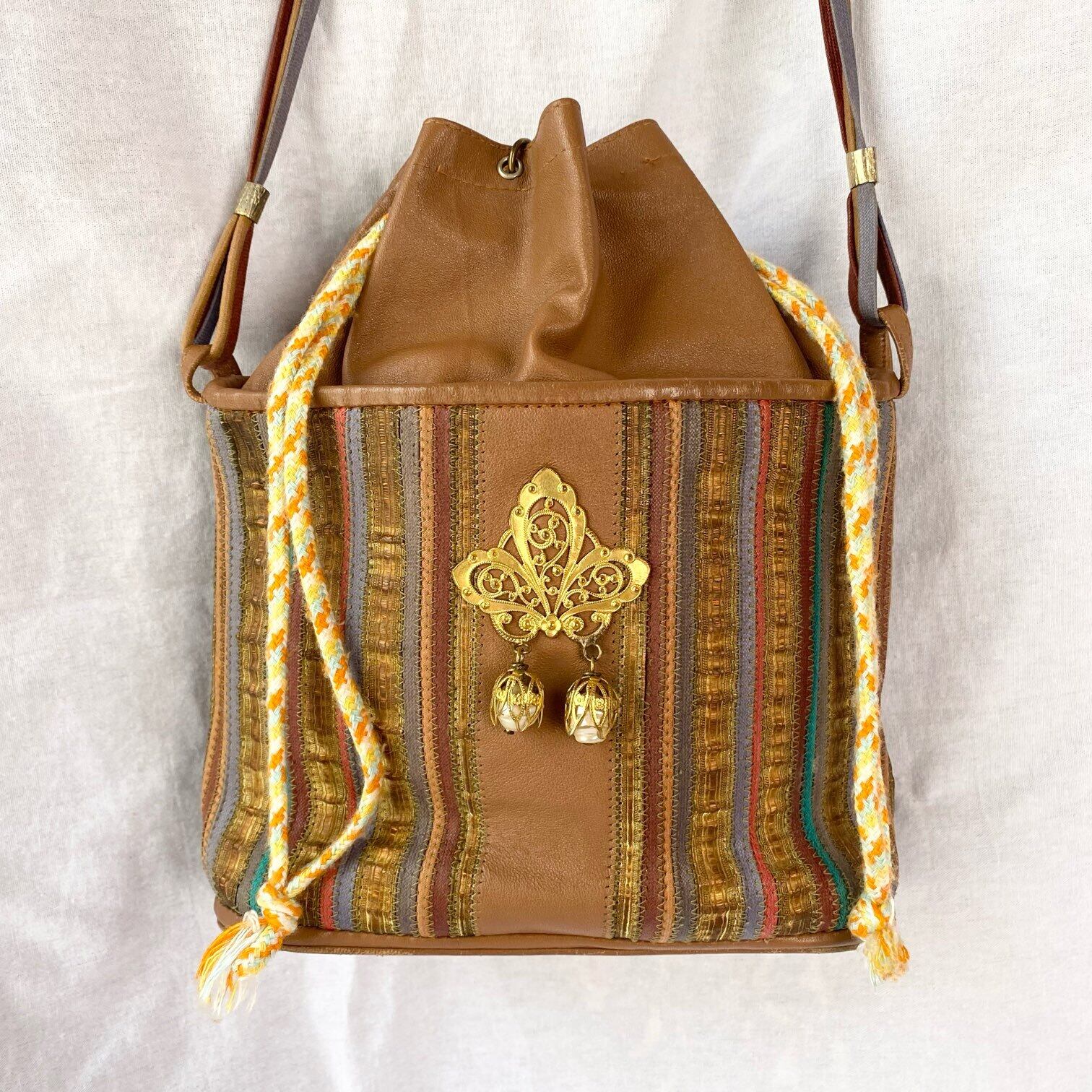 レザーのストライプの凝ったステッチとオリエンタルな金具。。