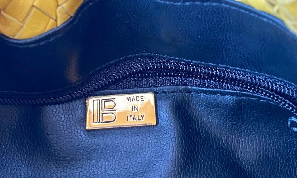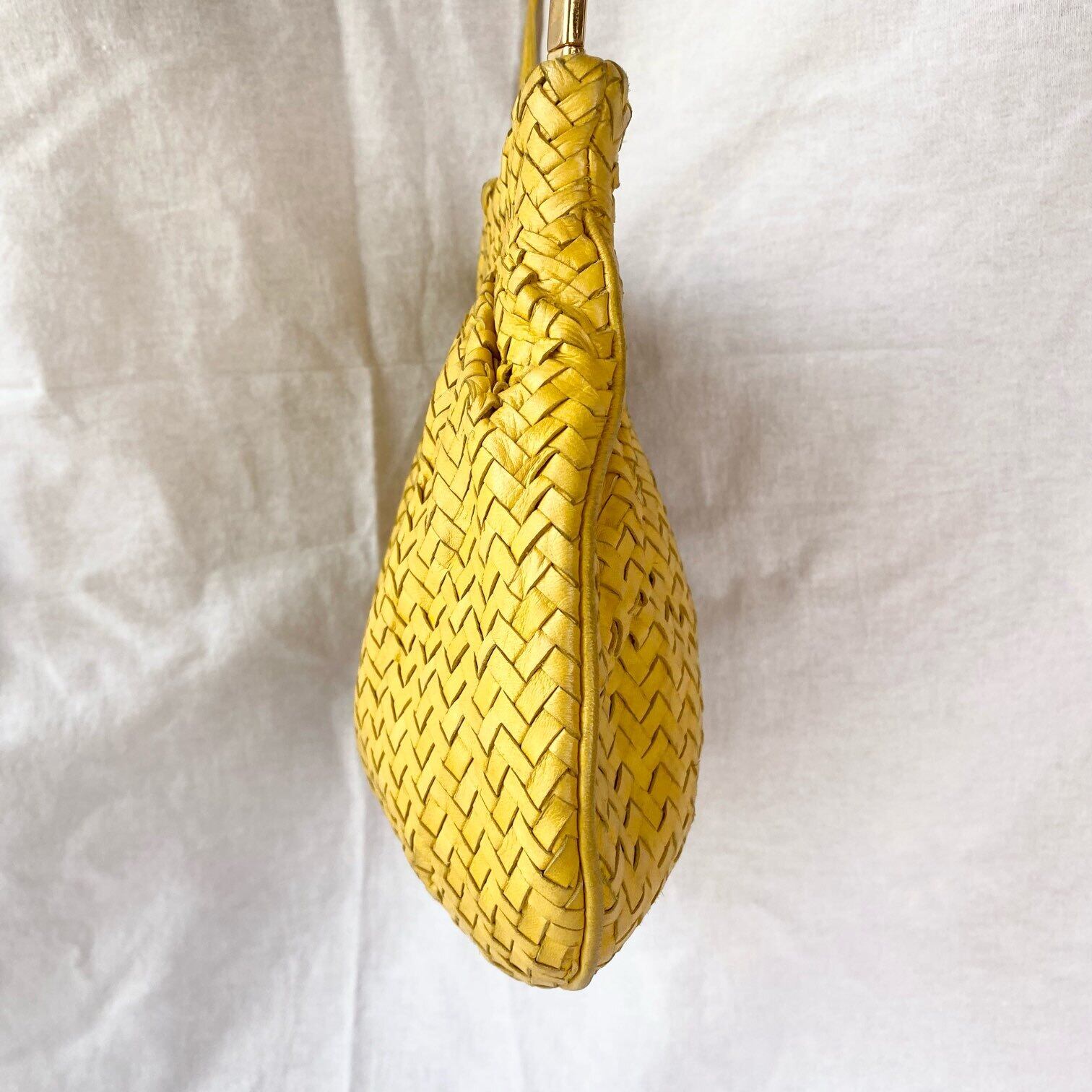 Italy "Intreccato" Leather Shoulder Bag -Yellow-