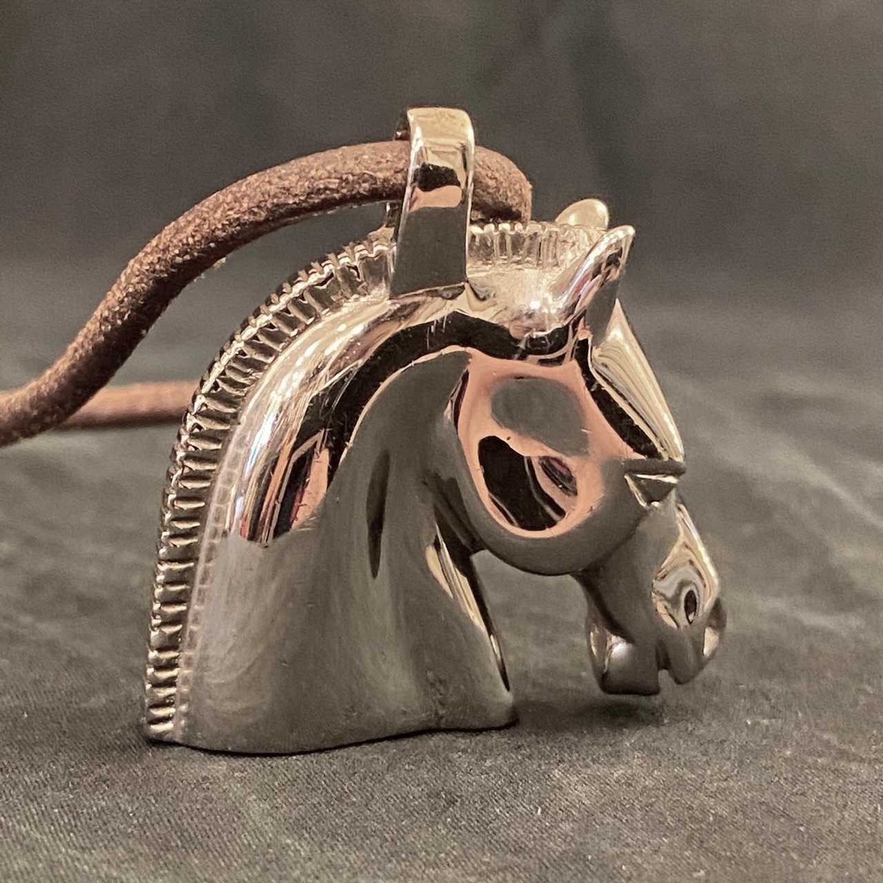 35 HERMÈS "Horse" Motif Necklace -Silver Plate-