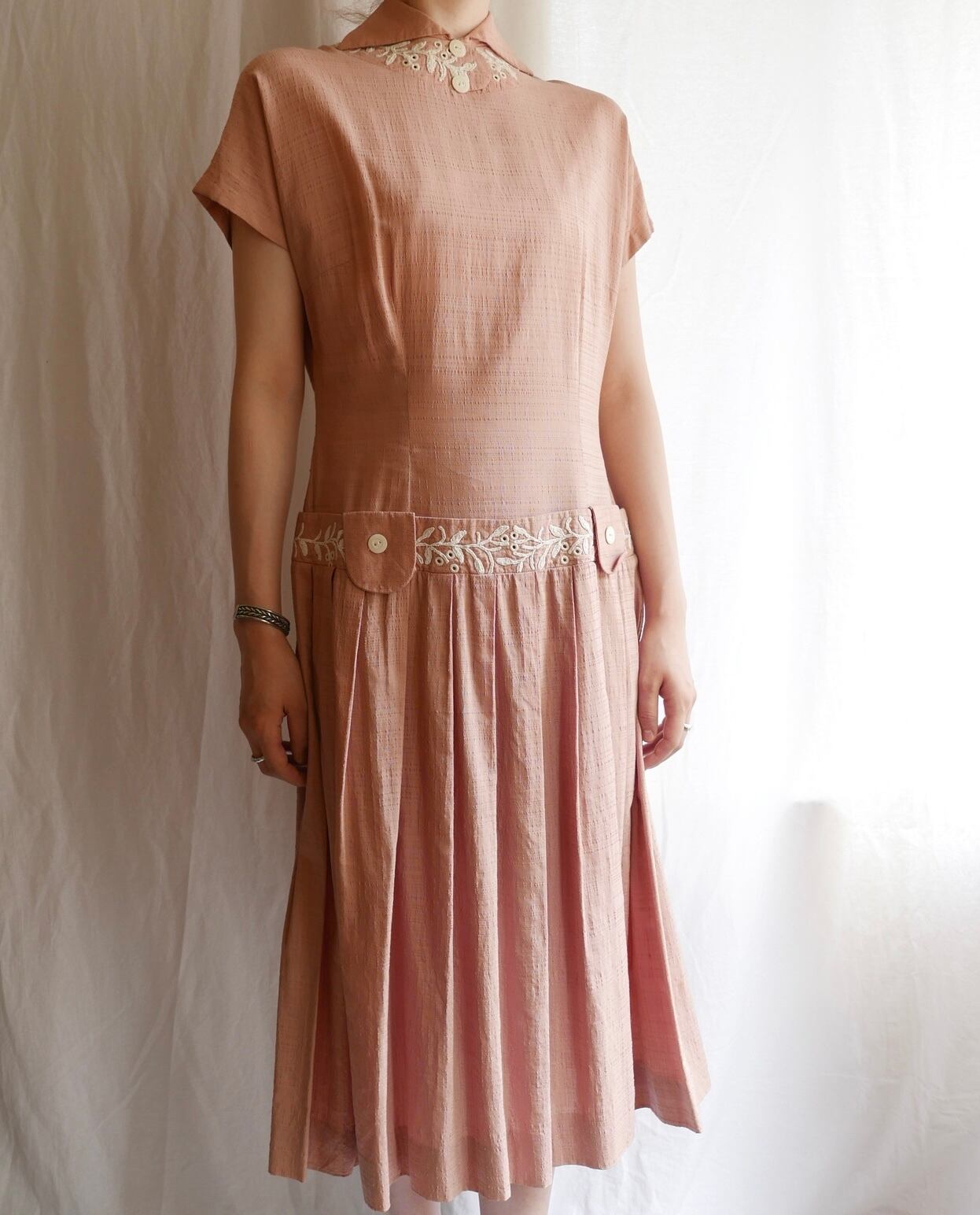 French 1950's pink Hand Made Dress