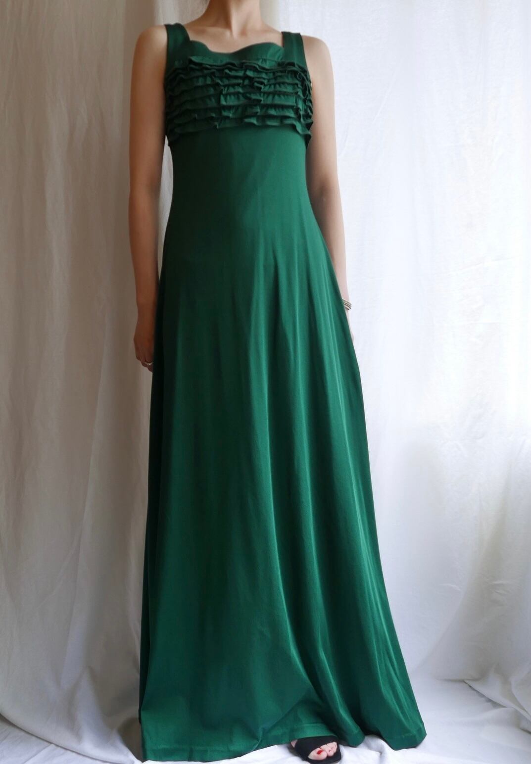 French 1970's handmade Long Dress -Green-