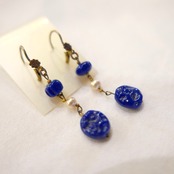 French 1950's "Blue Glass" ピアス #01 -Flower Clasp --Dead Stock!-