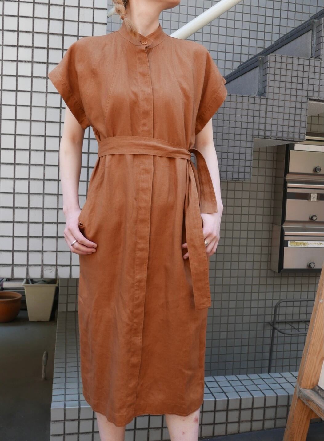 リネンで着心地も良く、ブラウンカラーが、初秋まで楽しめます。
