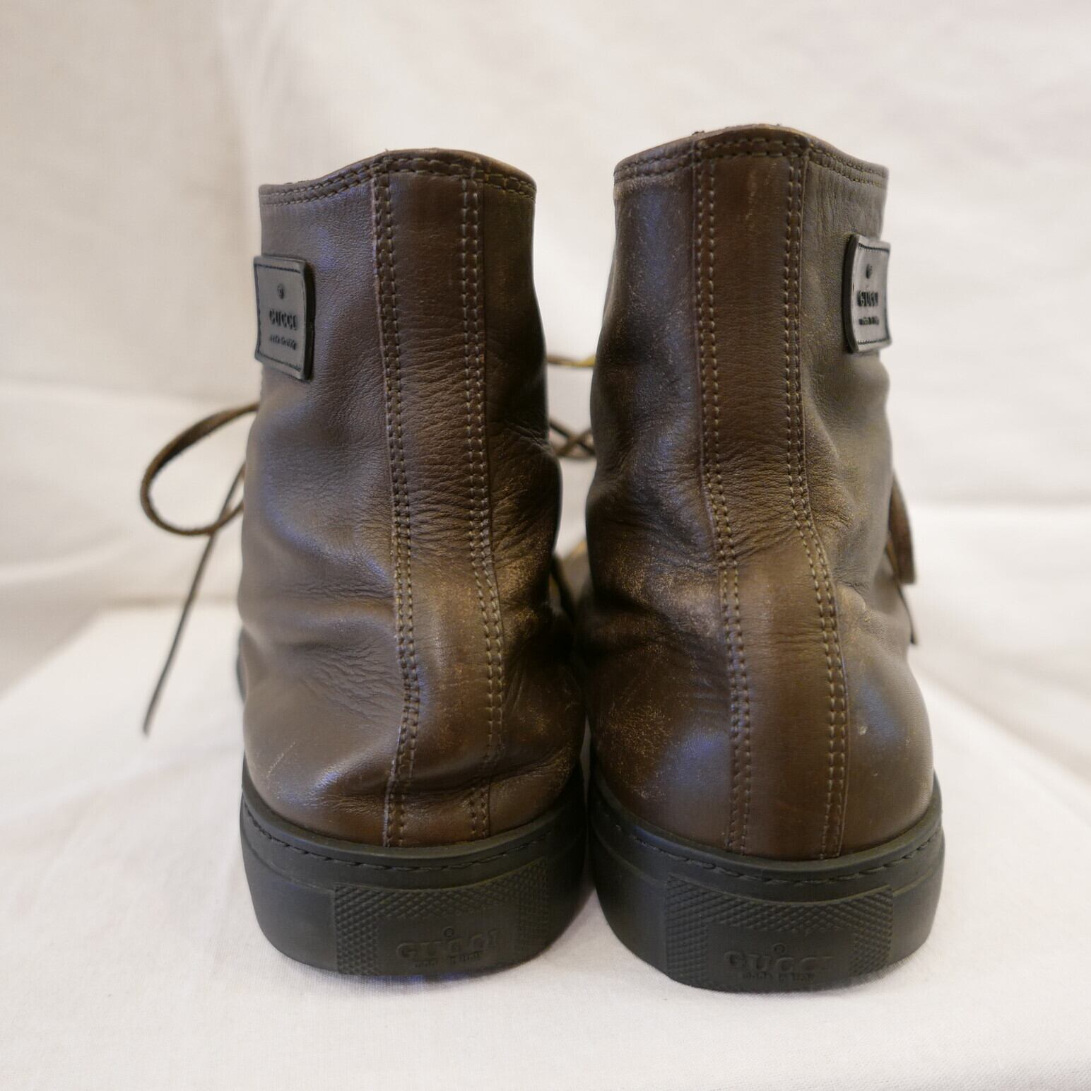 <men’s>GUCCI Dark Brown Leather "High-Cut" Sneaker