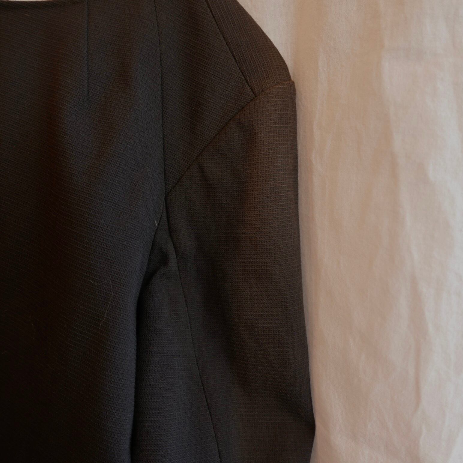 首からの切り返し、袖部分×バックの大胆なスリットなどきれいなLINEを計算しつくされた一見シンプルですが、凝ったデザインです。。