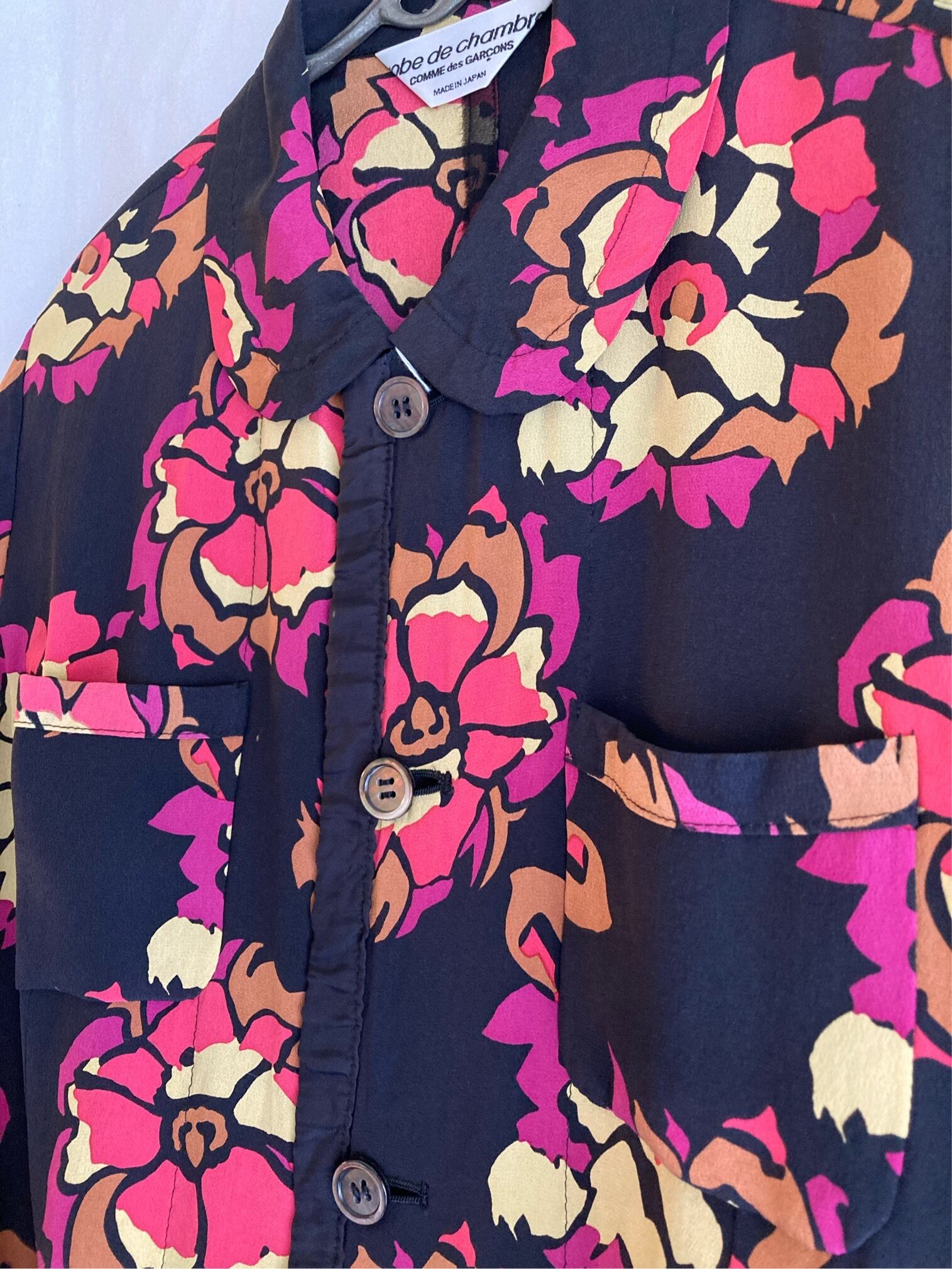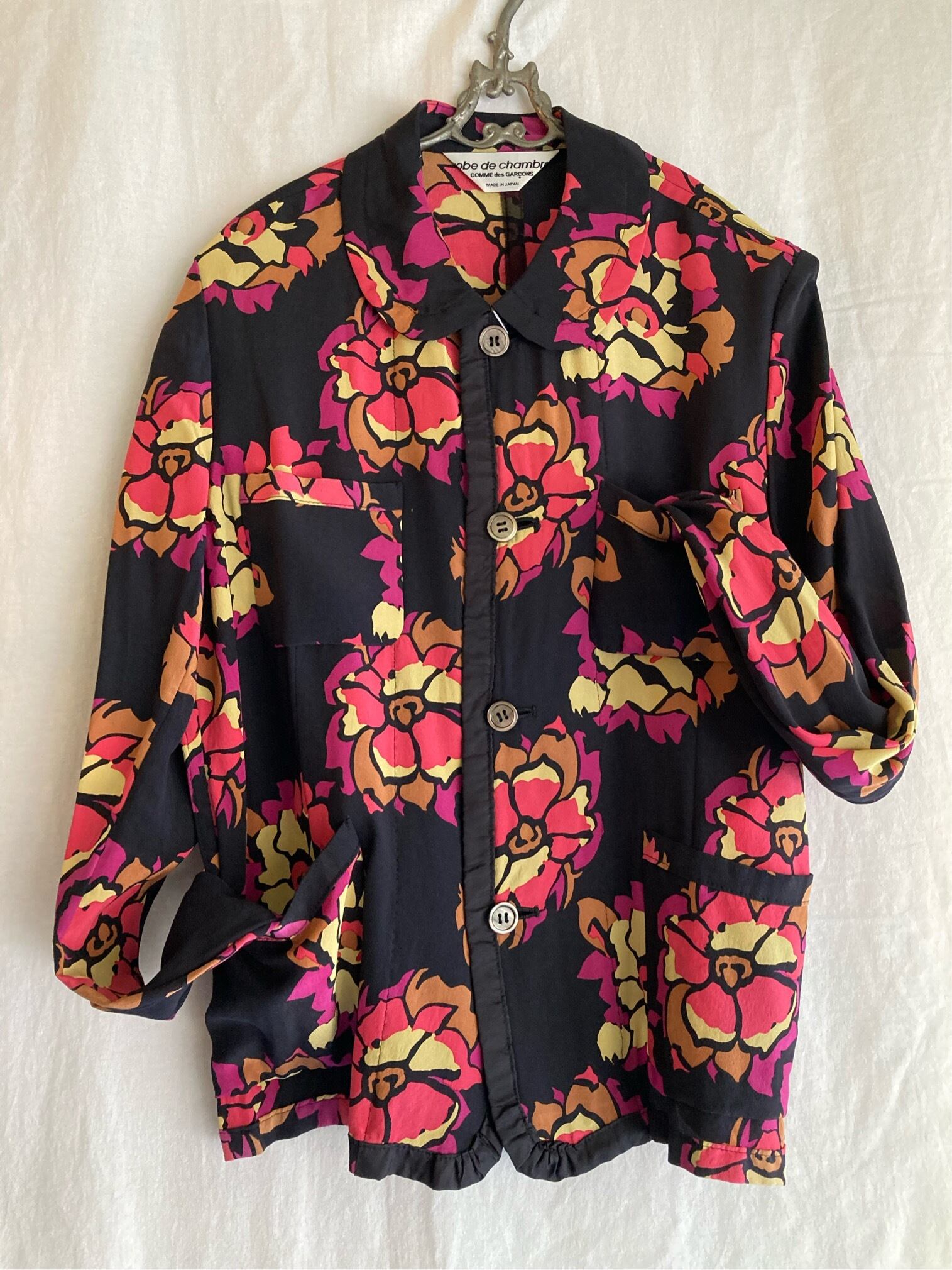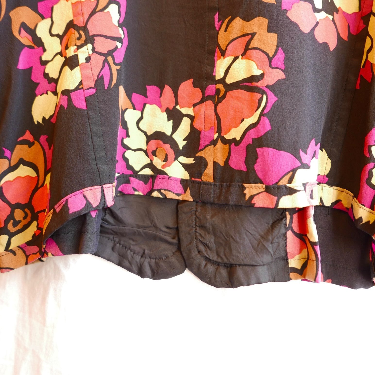 力のある描写の花プリントに、丸襟、ブラックリボンや4つポケットのレイアウトがcuteな一枚☆