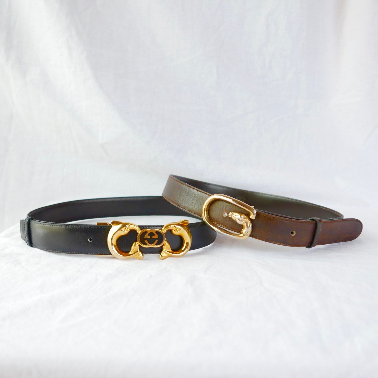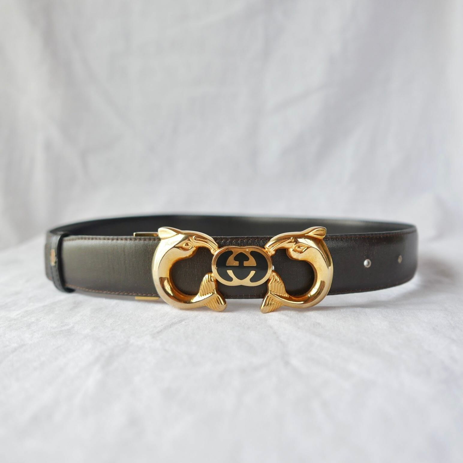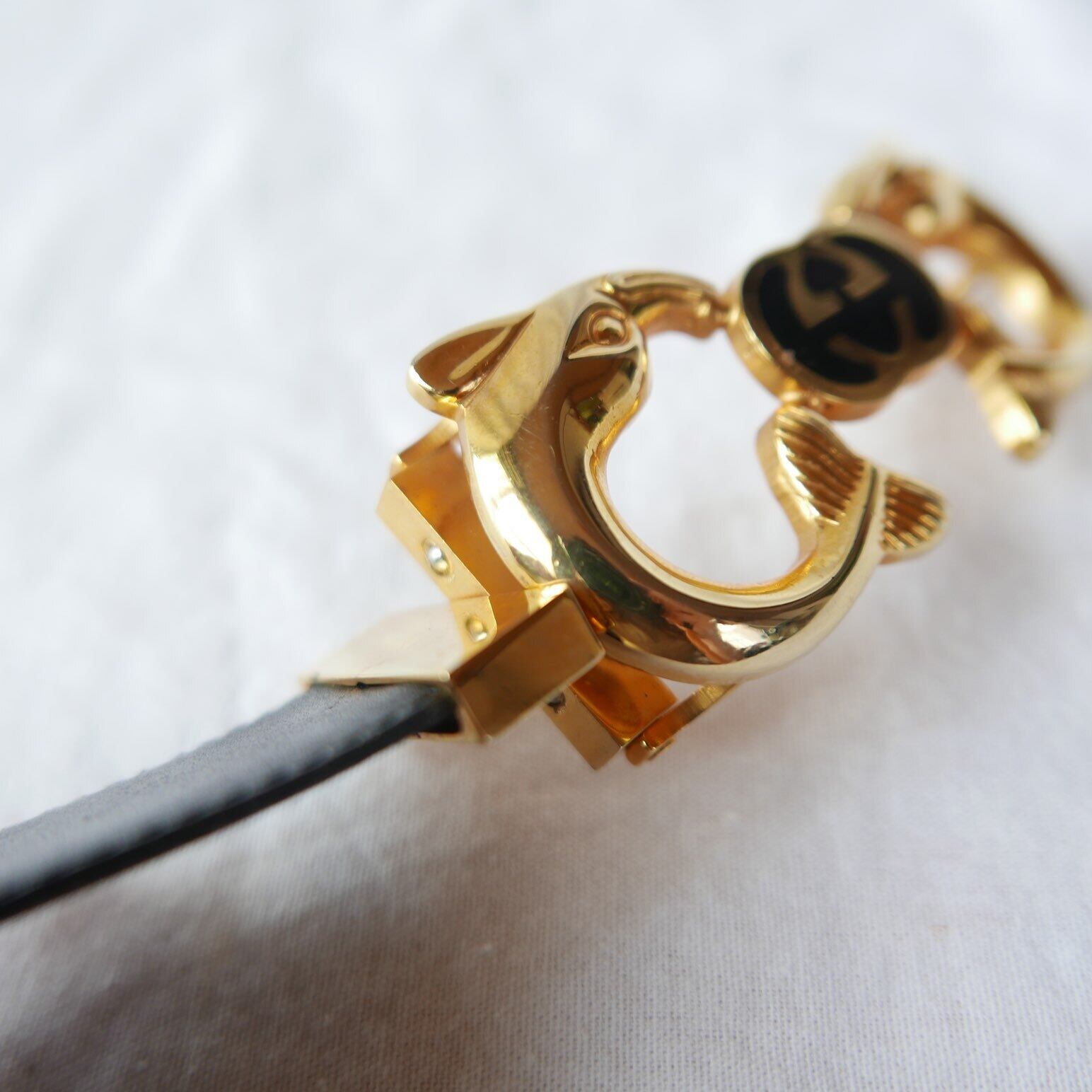 GUCCI 1980's "Dolphin Buckle" Reversible Belt -Very Special!-