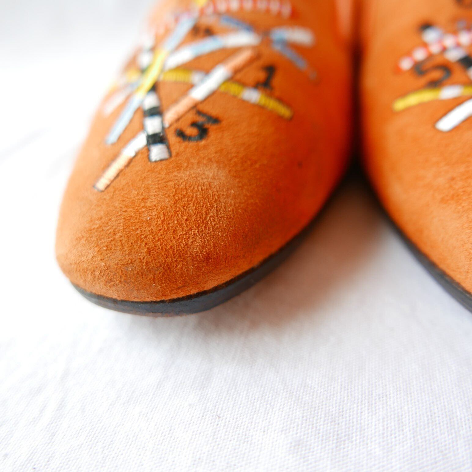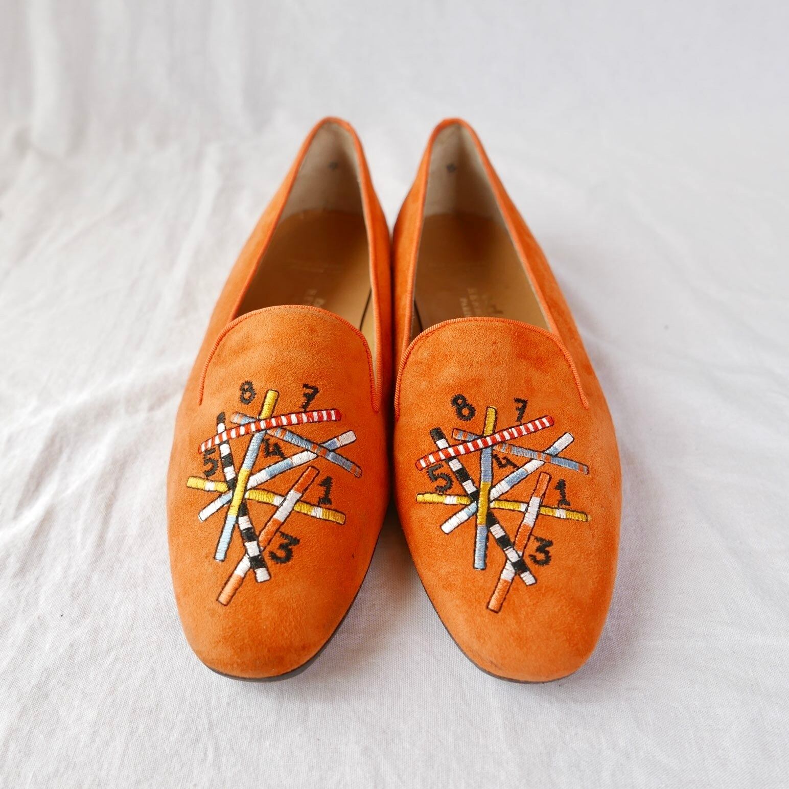 HERMES "Number Pattern" Orange Suede Leather Shoes