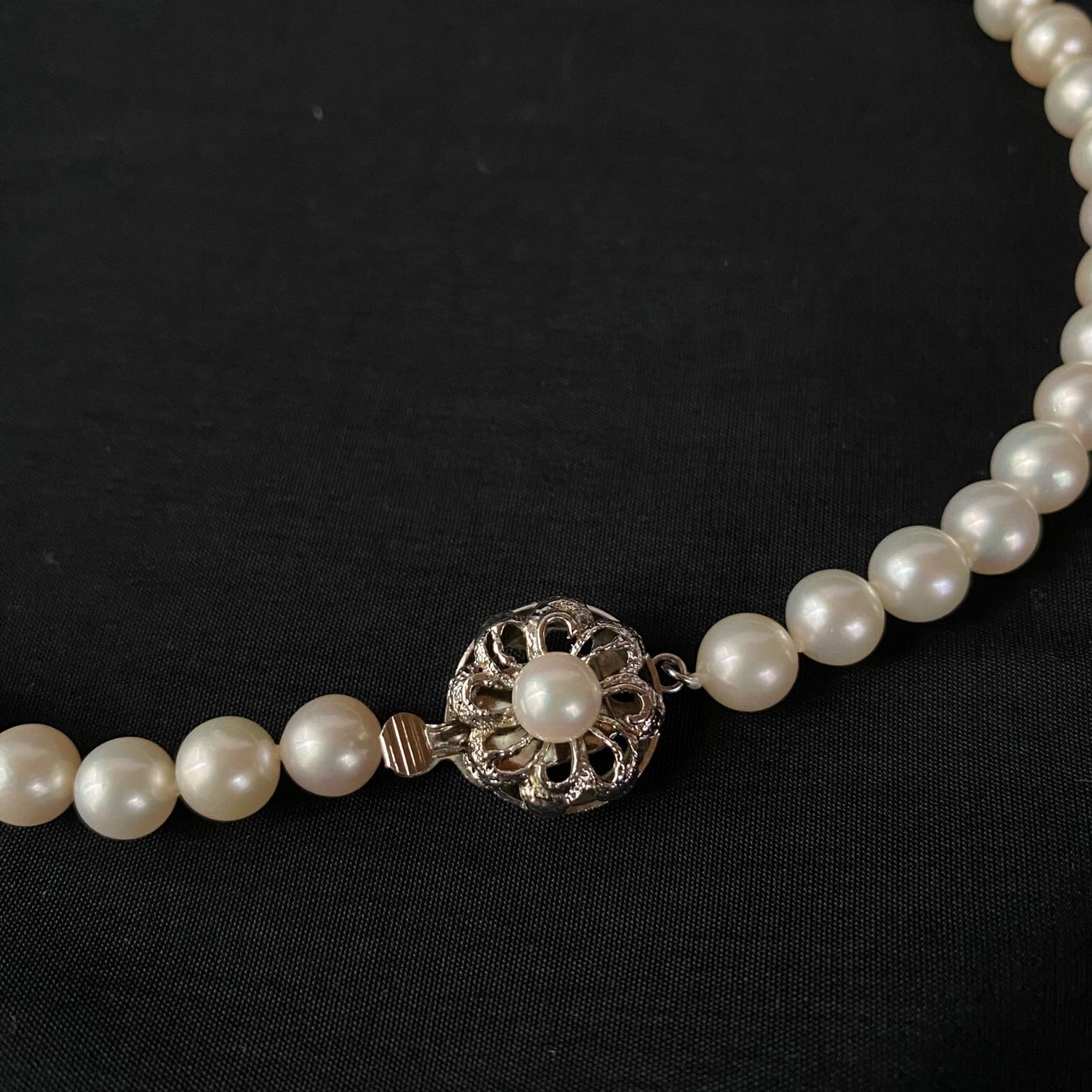 留め具もお花モチーフにパールが施されていて後ろ姿もかわいい一品です