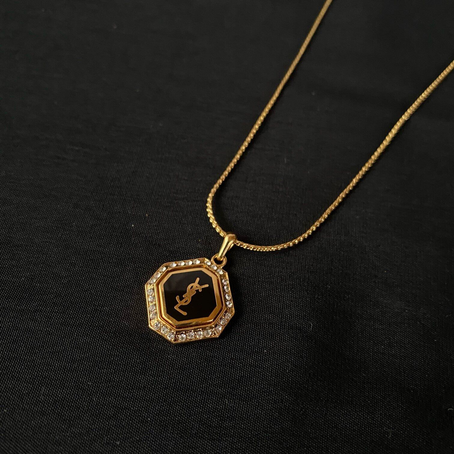 YSL "Black Octagon" Rhinestone Necklace