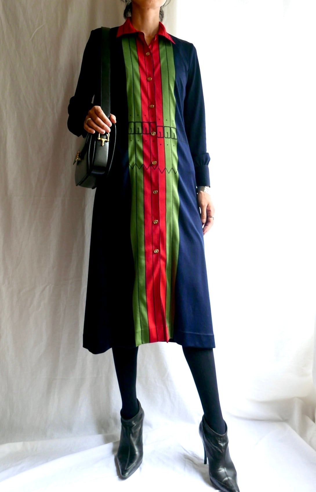 ROBERTA 1970~1980's "Belt Printed" Dress