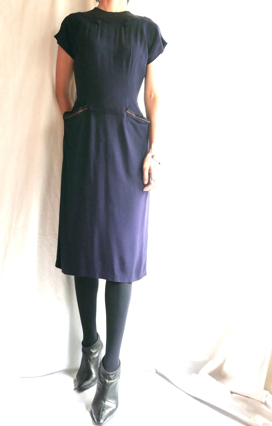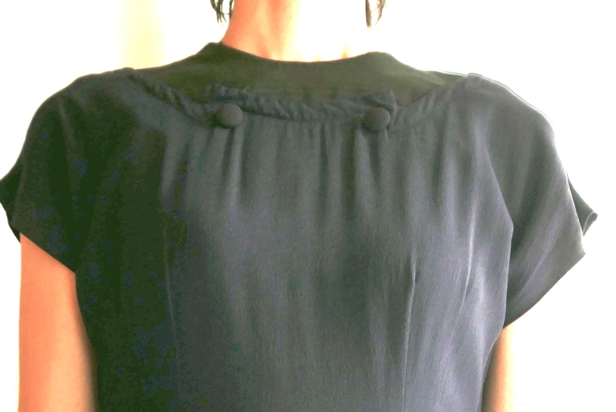 French 1950's Hand Made "French-Sleeve" Navy Dress