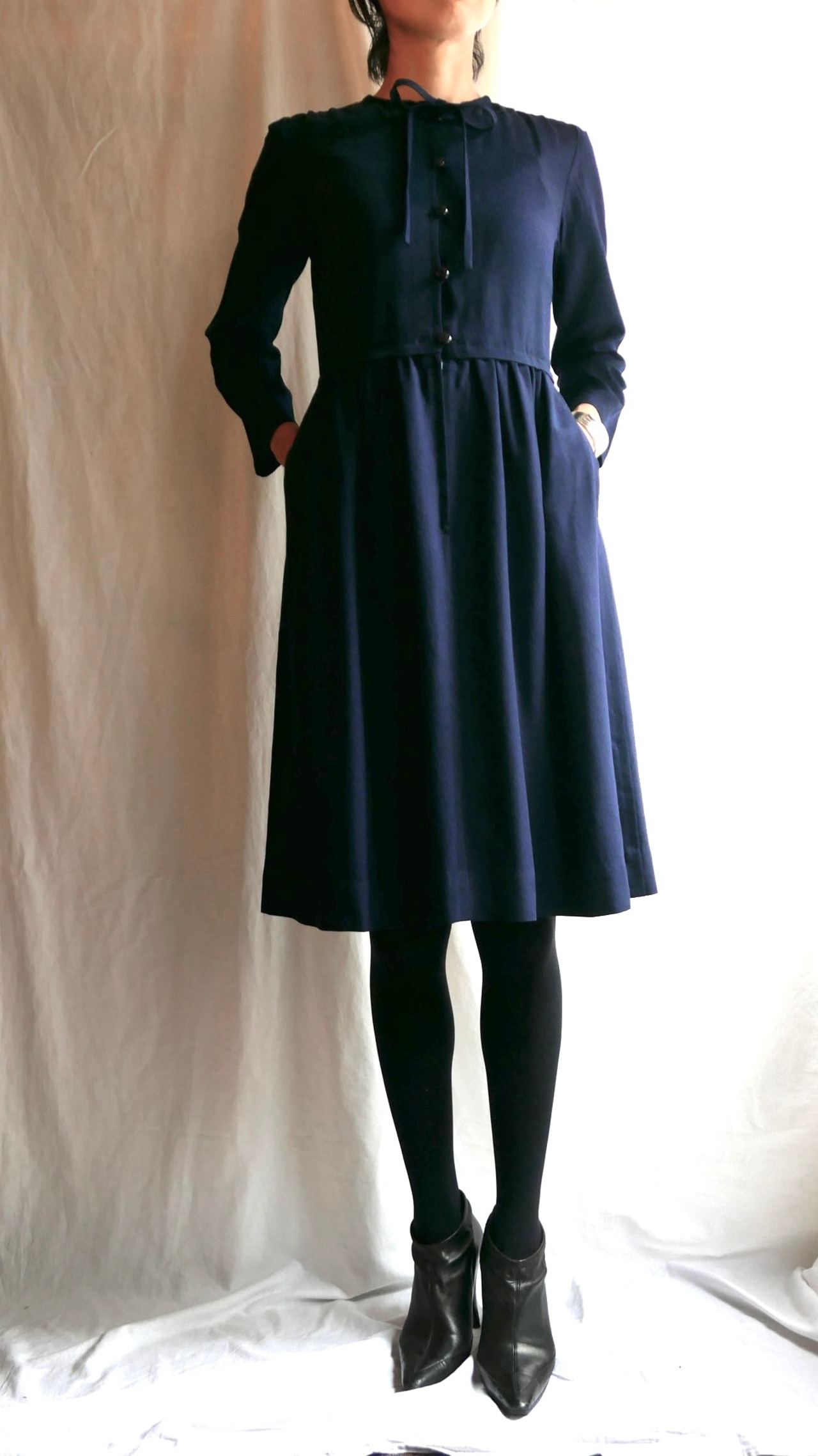 襟元のシンプルなリボンがポイントの1980's UNGAROワンピース