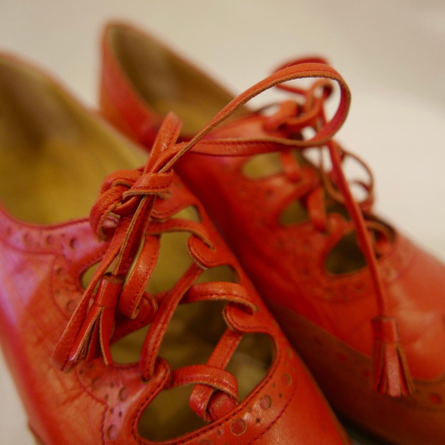 HERMES "Lace Up"3 color Shoes -Orange×Red x Brown-