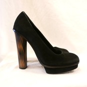 FENDI "Wooden High-Heeled" Black Suede Pumps -Dead Stock!-