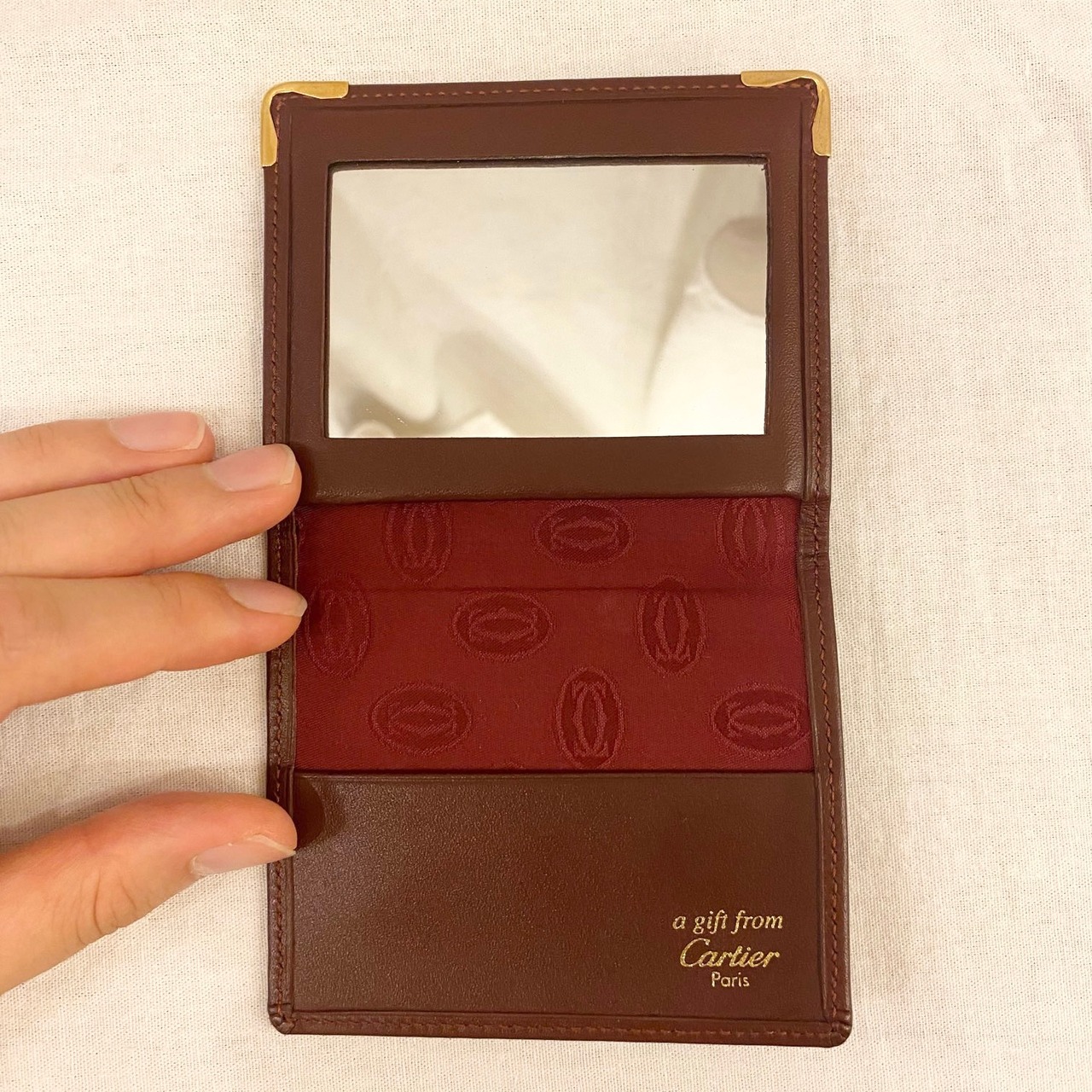 CARTIER Bordeaux Leather "Mirror & Card" Case -Dead Stock!-