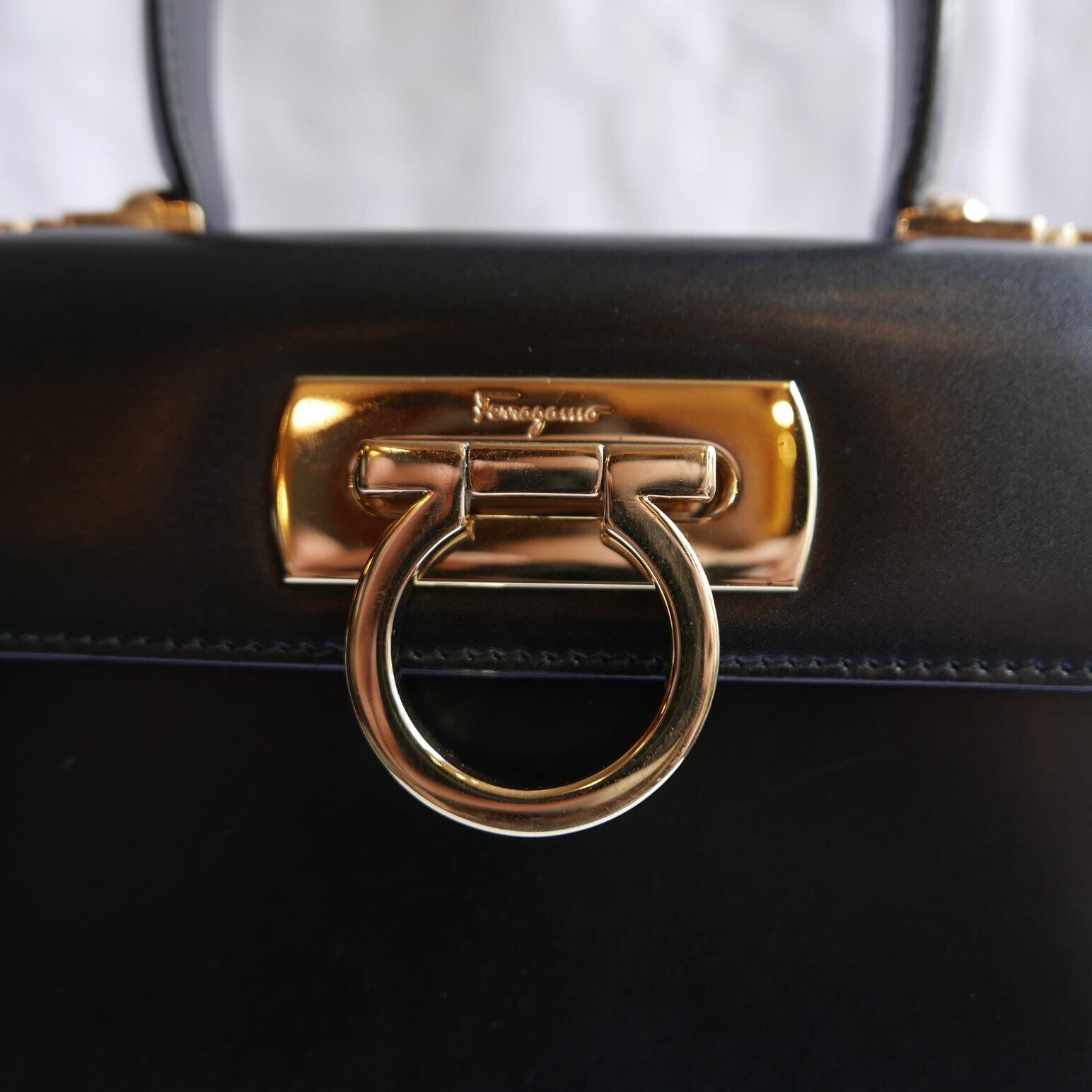 FERRAGAMO "Black Leather" mini 2-Way Bag -Dead Stock!-