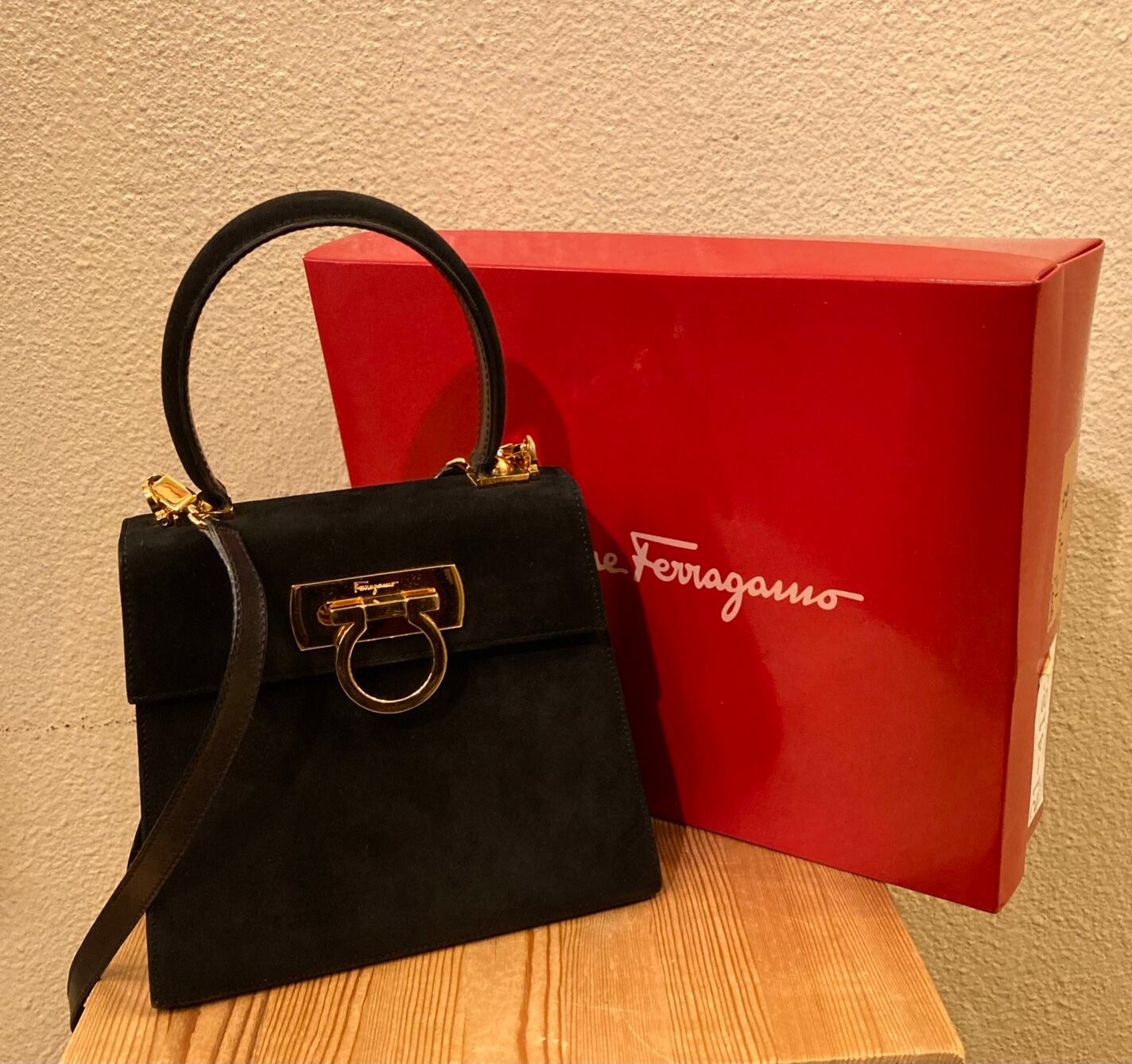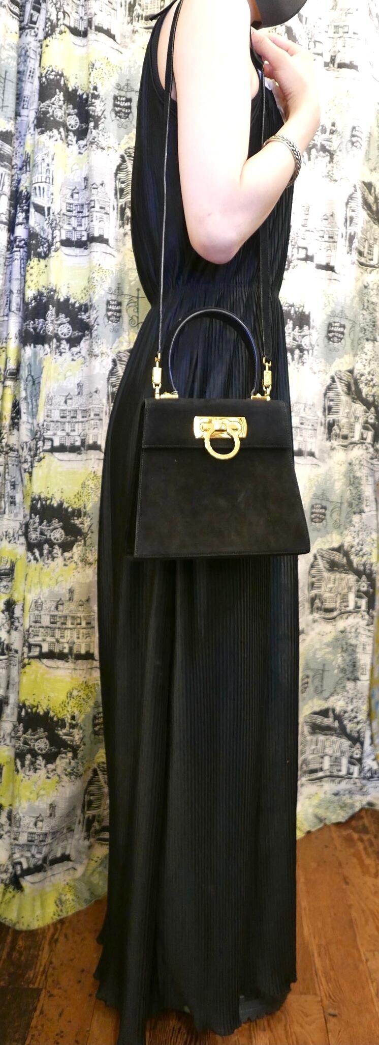 フェラガモの、ガンチーニ金具の2wayショルダー。こちらはベロア !