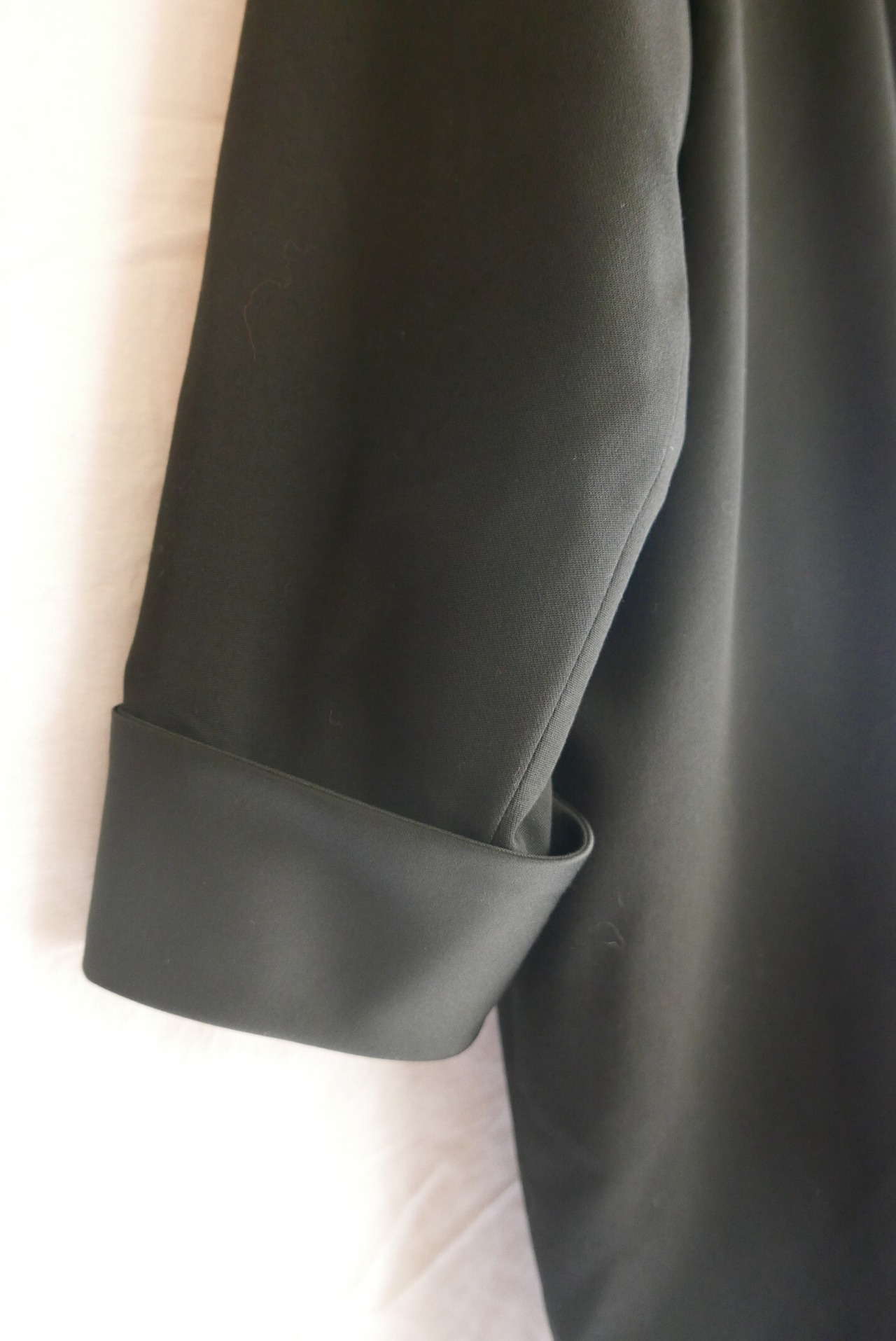 ミニマムなデザインと少し光沢のあるテロっとした生地感のAラインのシルエットも美しい。。。