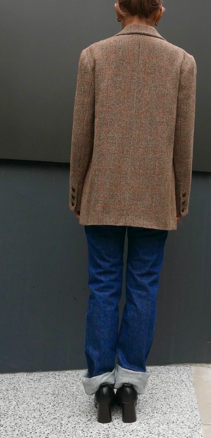 ややビックサイズなマニッシュラインに、優しい色味のチェック柄。