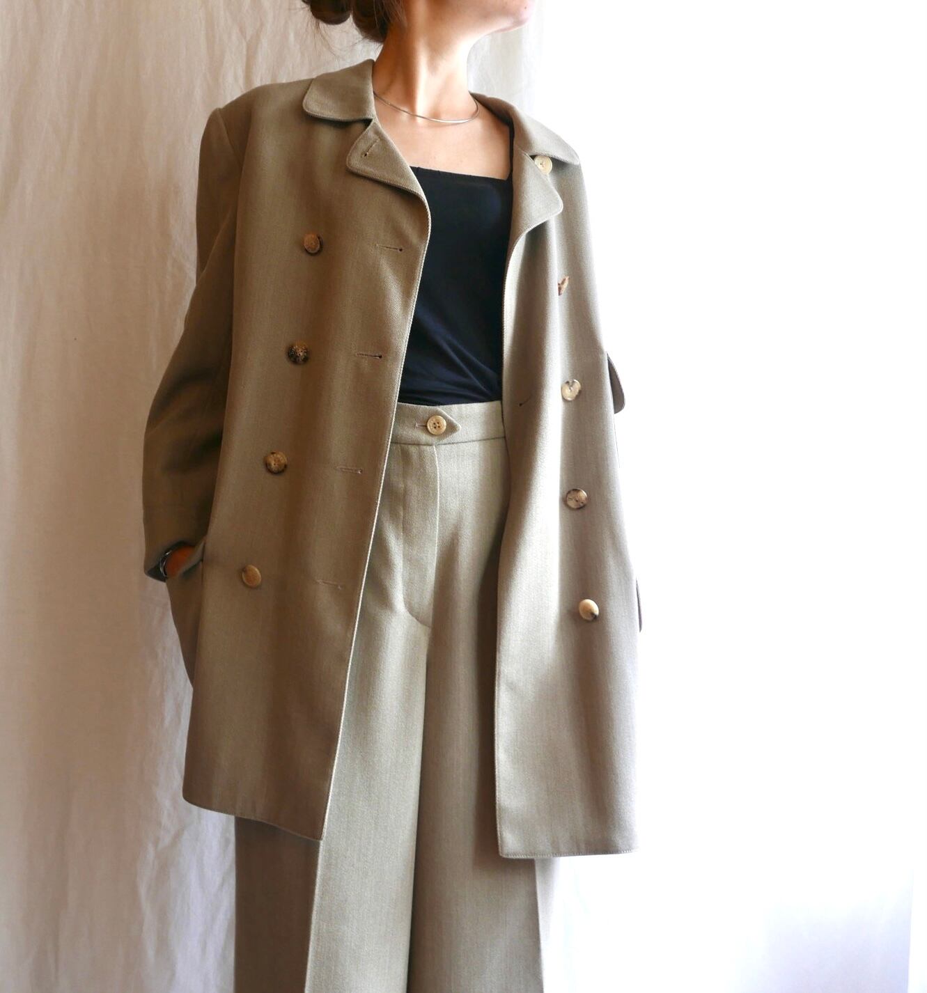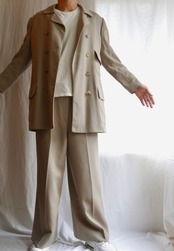 ジャケットはダブルのコート風で少し長めの丈感で、超ワイドなパンツと相まって素晴らしいシルエットです☆