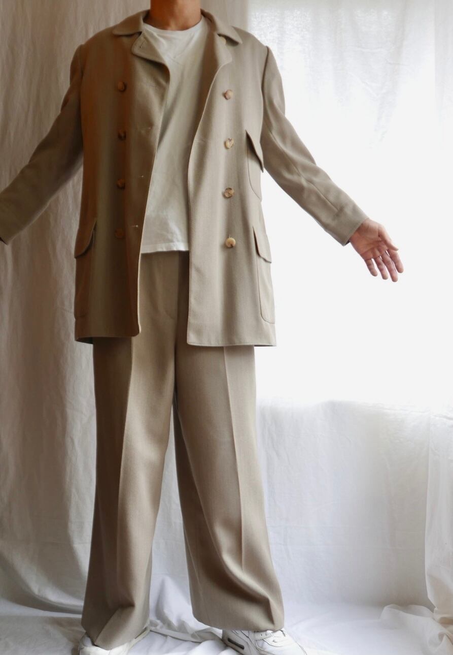 HERMES 1980's "Light Khaki" Wool Set-Up