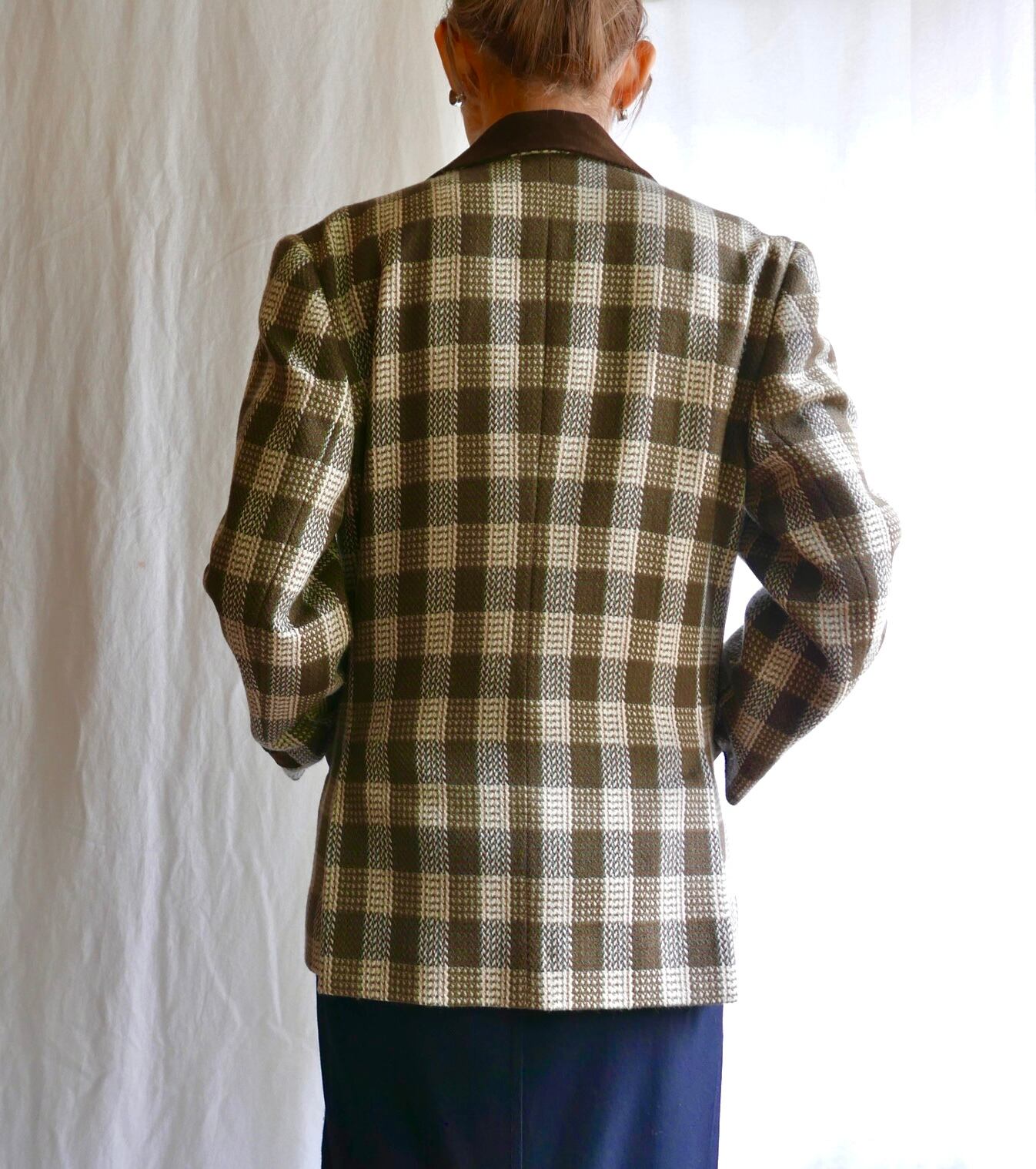 CELINE 1980~1990's "Plaid Pattern" Single Jacket -Brown-