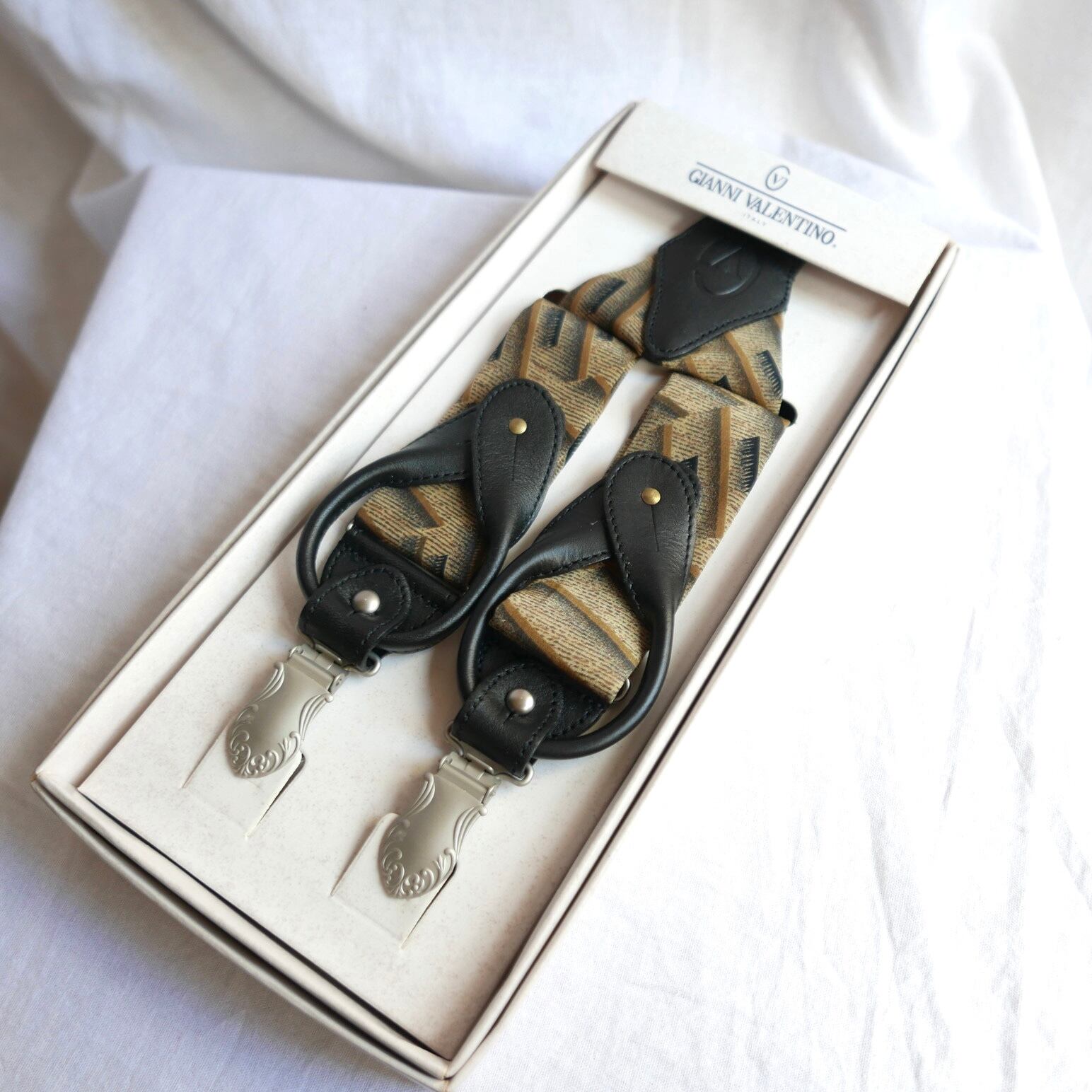 VALENTINO Suspenders #04 -Light Brown×Black- -Dead Stock!-