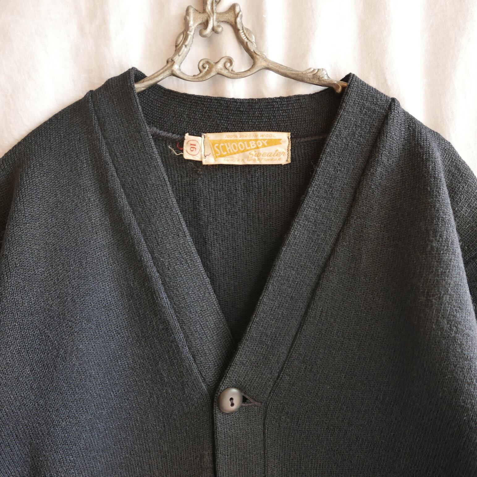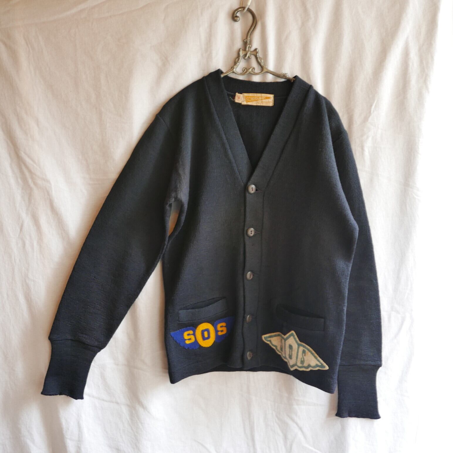 ≪Men's≫ U.S. 1970's "School Boy" Patch Worked Design Dark Navy Cardigan