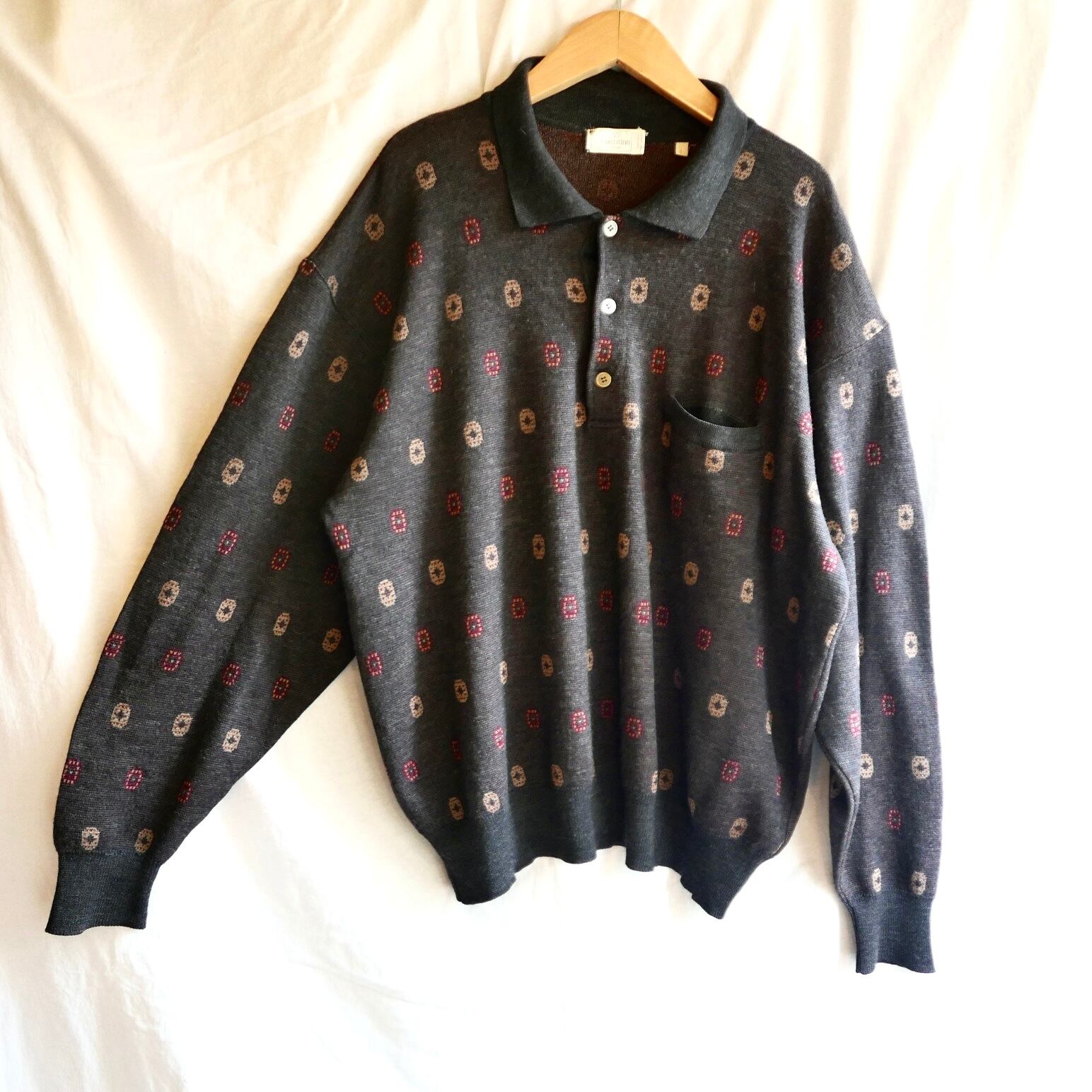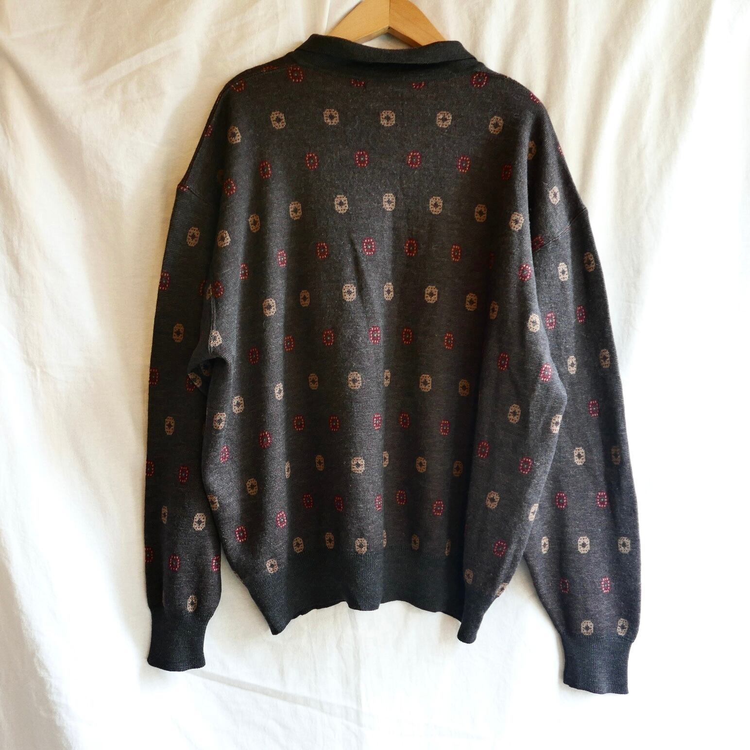 ボルドーがかったチャコールの色味が秋らしいニットポロ