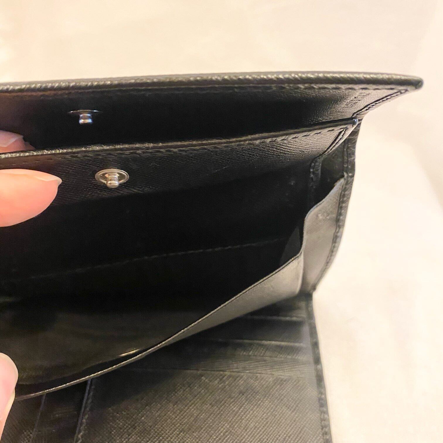 つや感のあるレザーがcoolな印象のPRADA折りたたみ財布