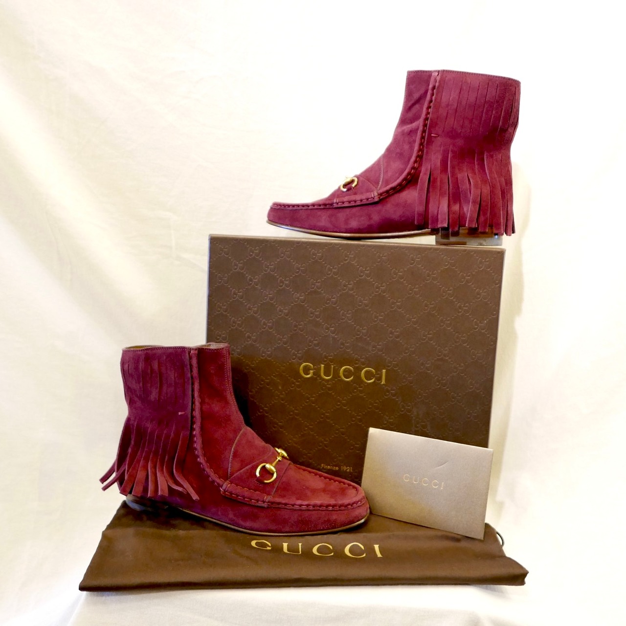 GUCCI "Purple Red" Fringed Short Boots -Dead Stock!-