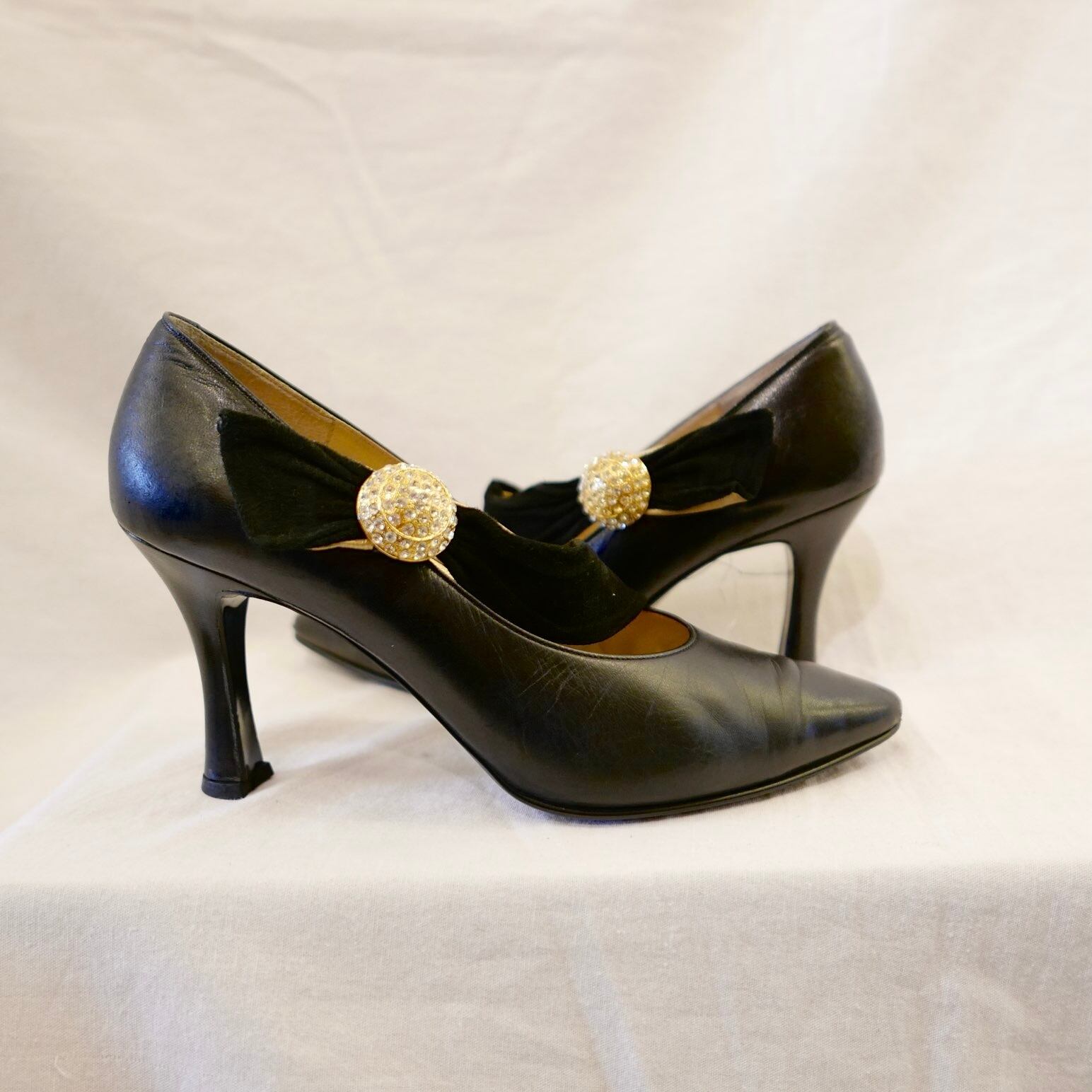 ベロアのストラップとゴールストーンがフェミニンなVERSACEのパンプス