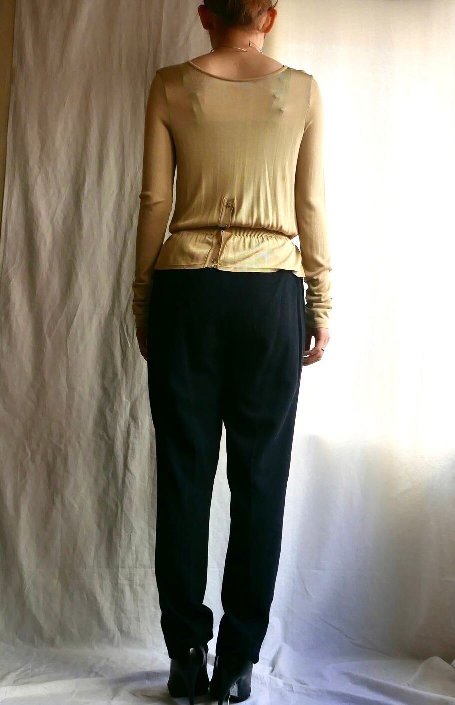 後ろボタンのレイアウトと、ウエストの切り替えラインが綺麗なギャザーになり、とてもエレガントです。