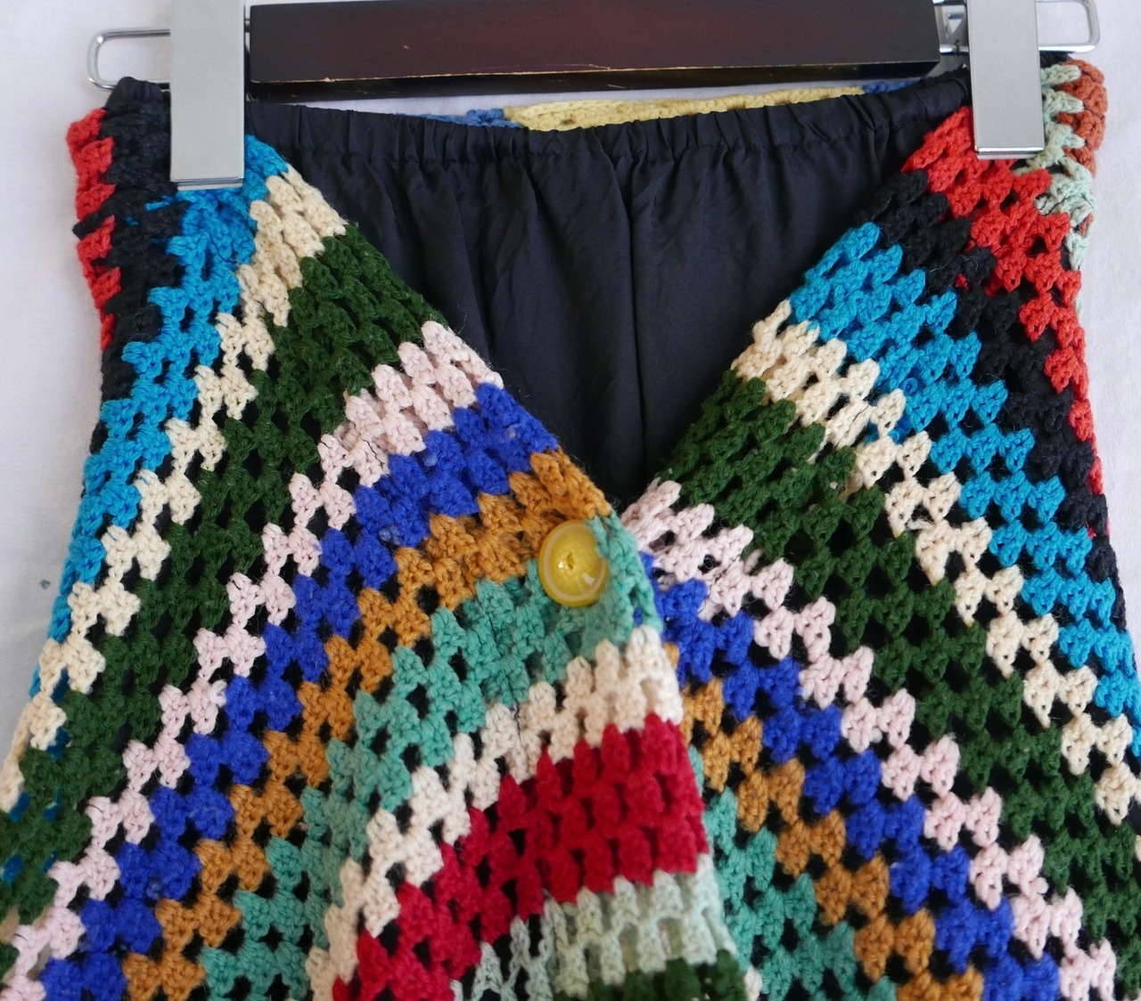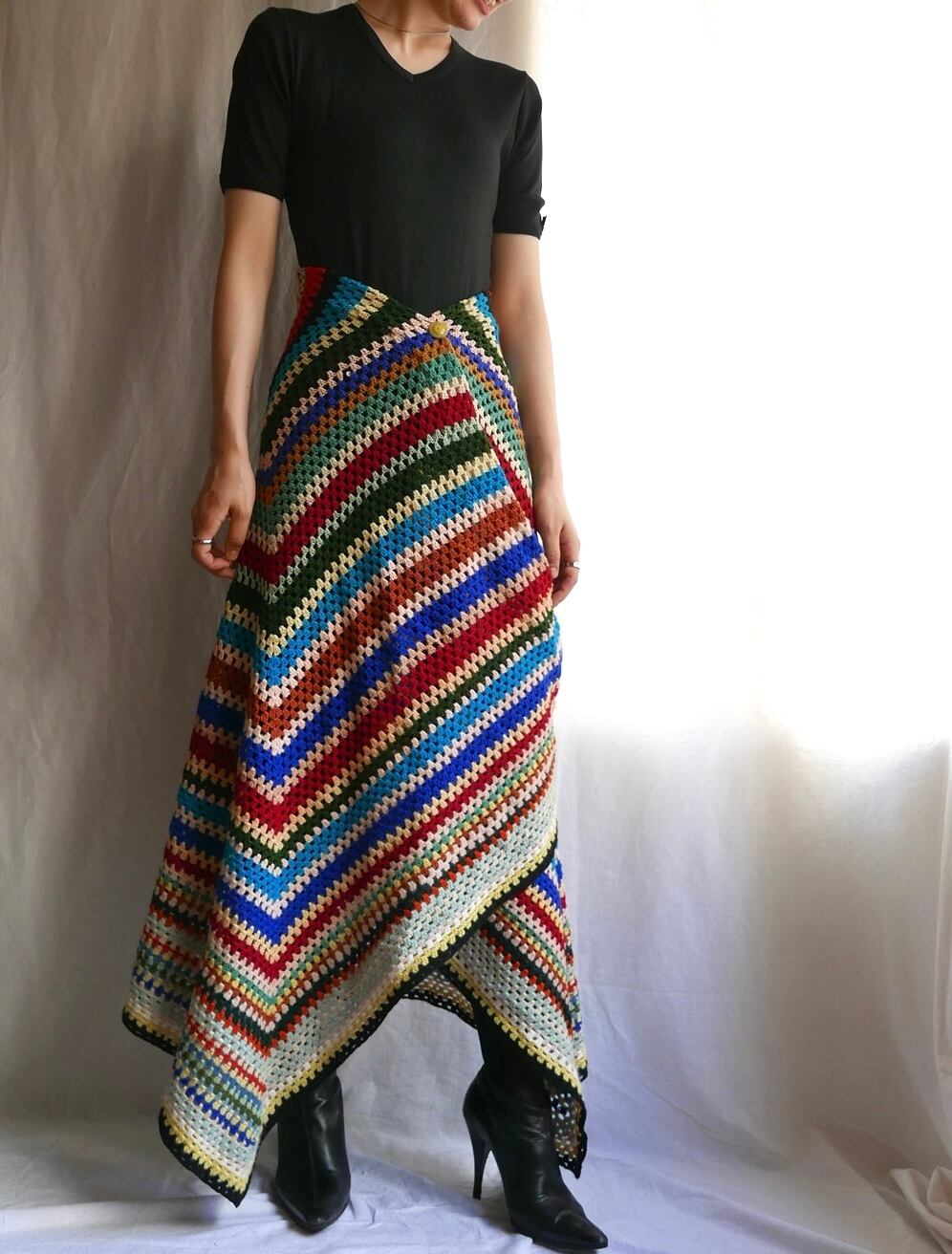 太糸で粗目の動きのあるニット生地でリメイクされたラップスカート