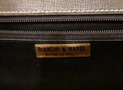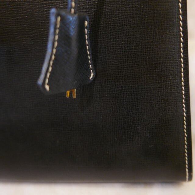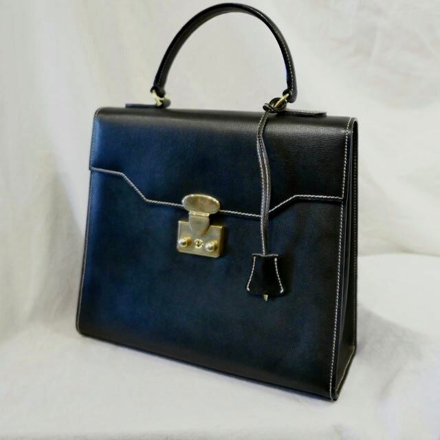 黒に近いダークネイビーの色味にホワイトのステッチが効いて上品な印象のスクエア型ハンドバッグ☆