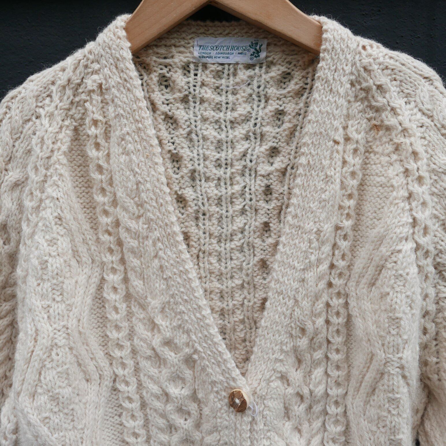 無地ながらも、その網目模様の美しさが圧倒的な存在感を放つ、アランニット