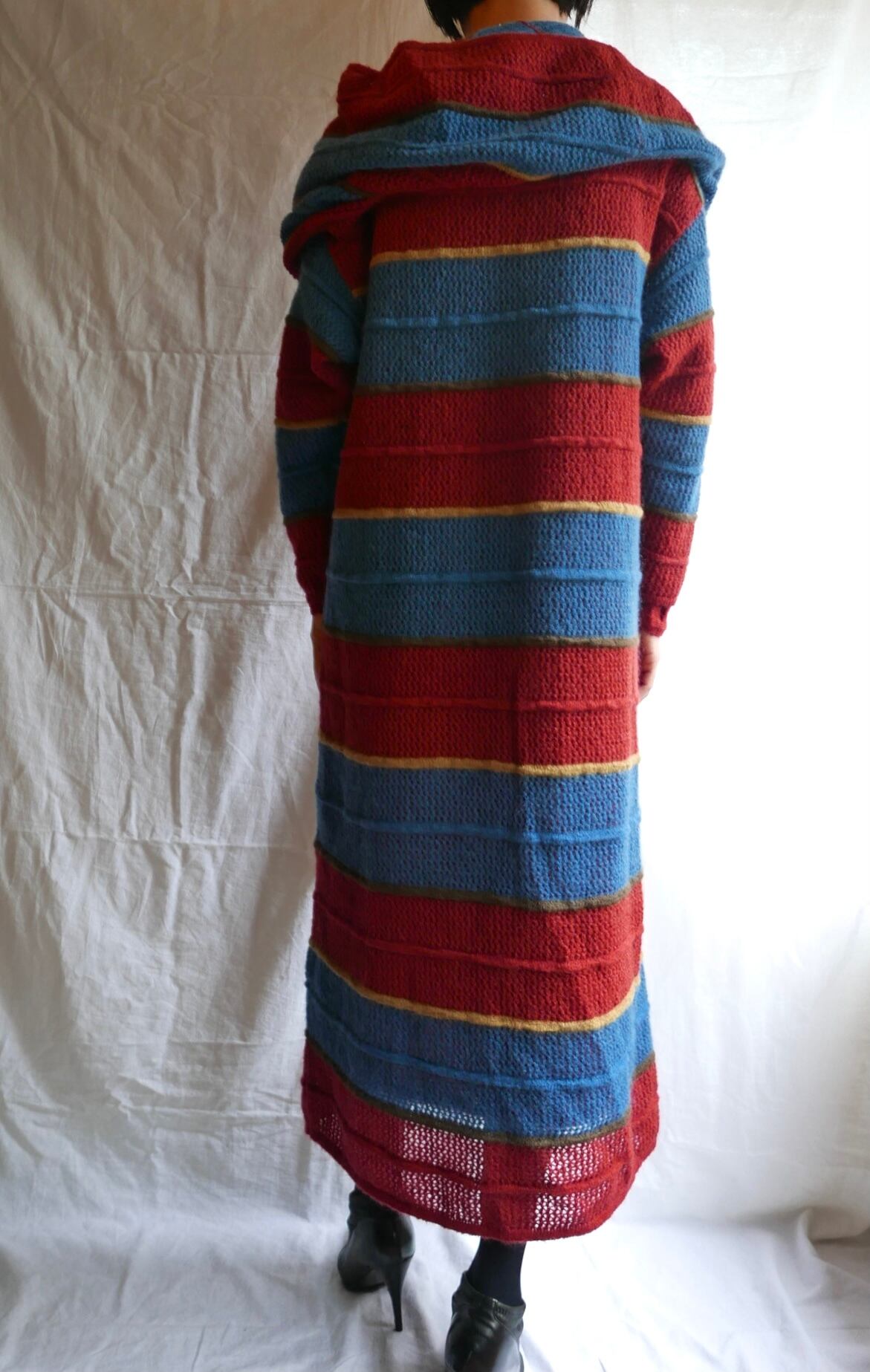ISSEY MIYAKE 1970's "Blue×Red" Big Hoodei Knitted Dress
