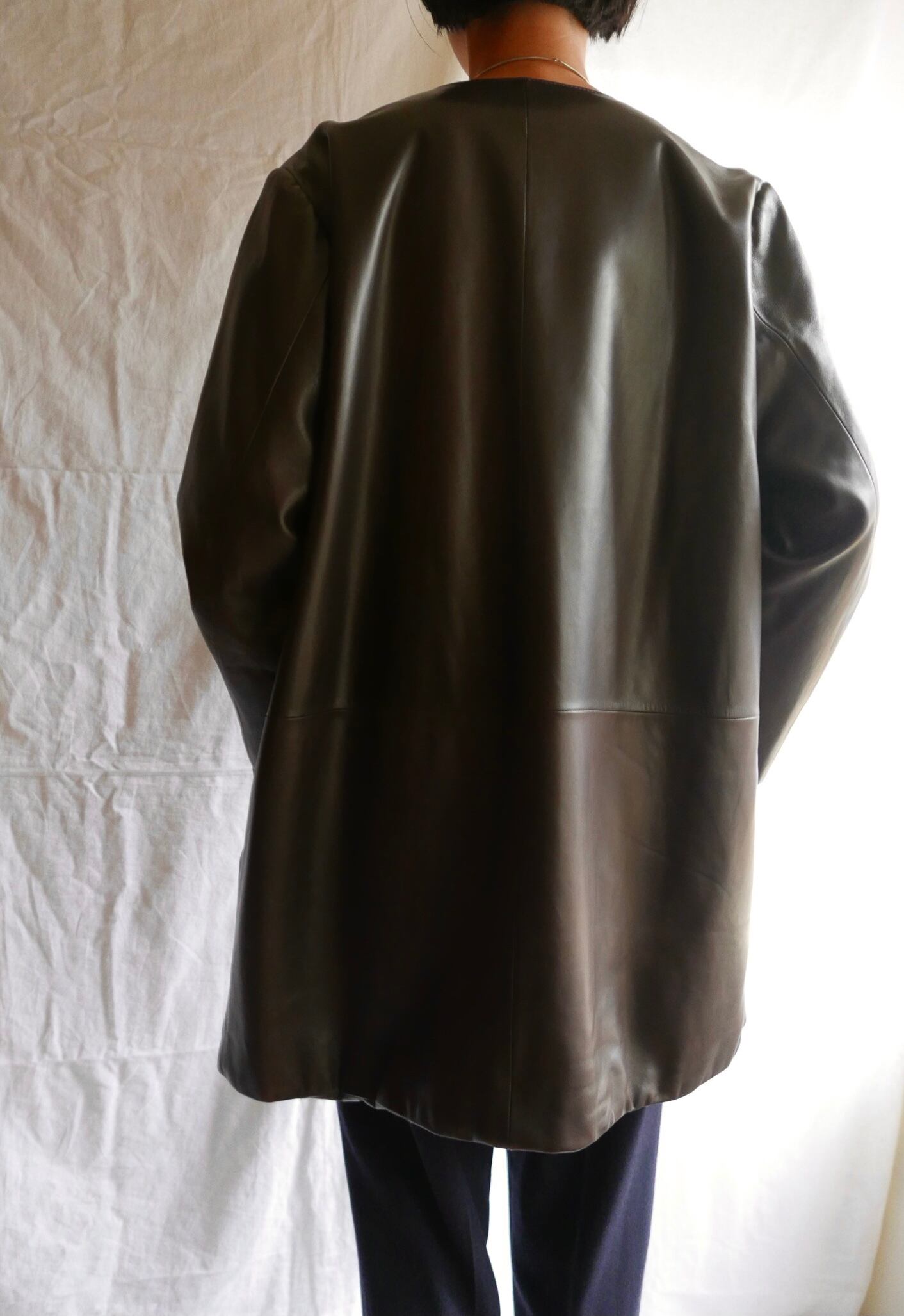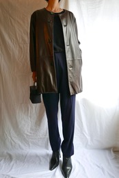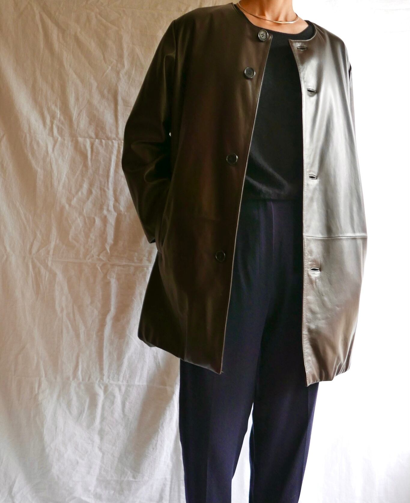 ノーカラーでスッキリとした首周りに、ほど良い丈感が着回しやすい一品です