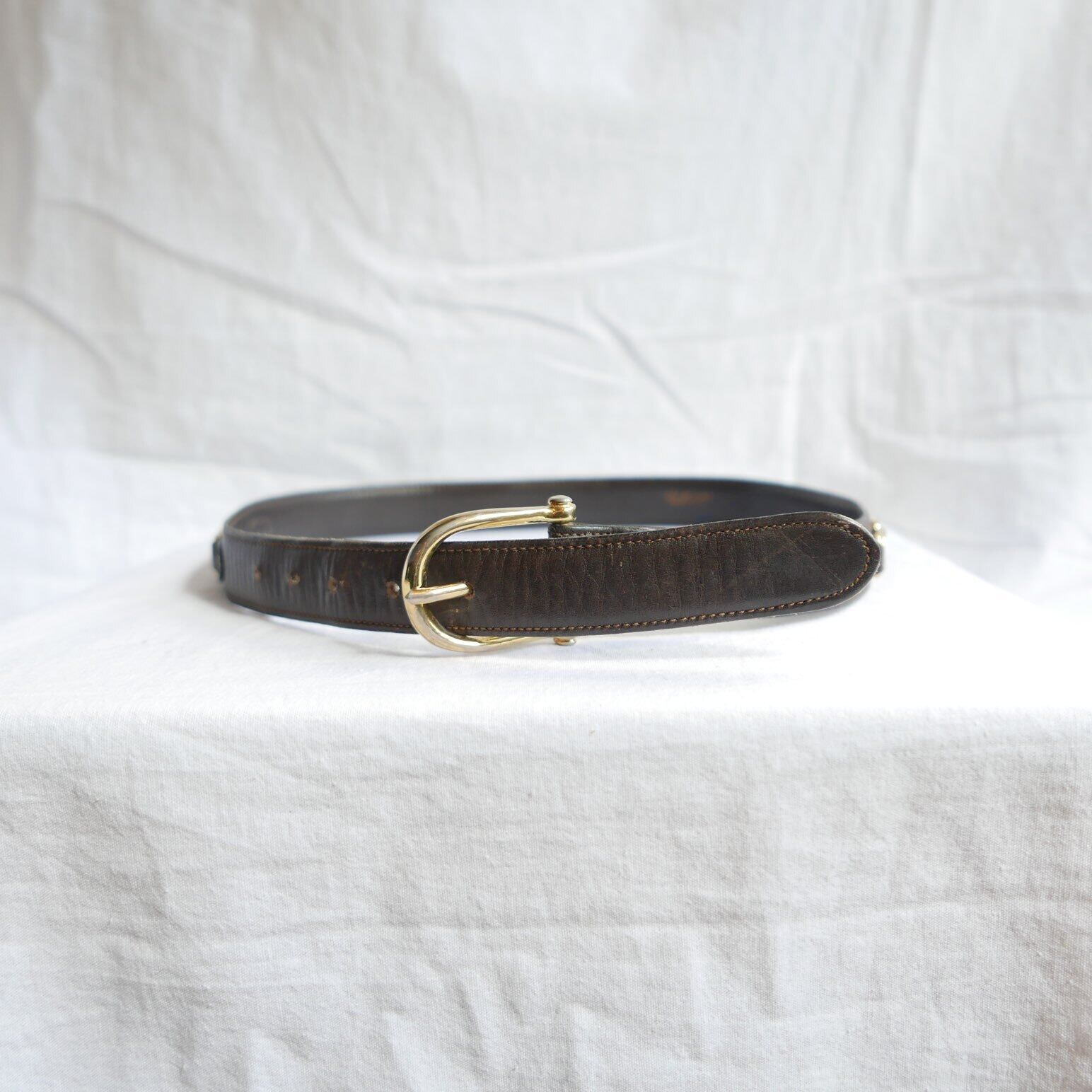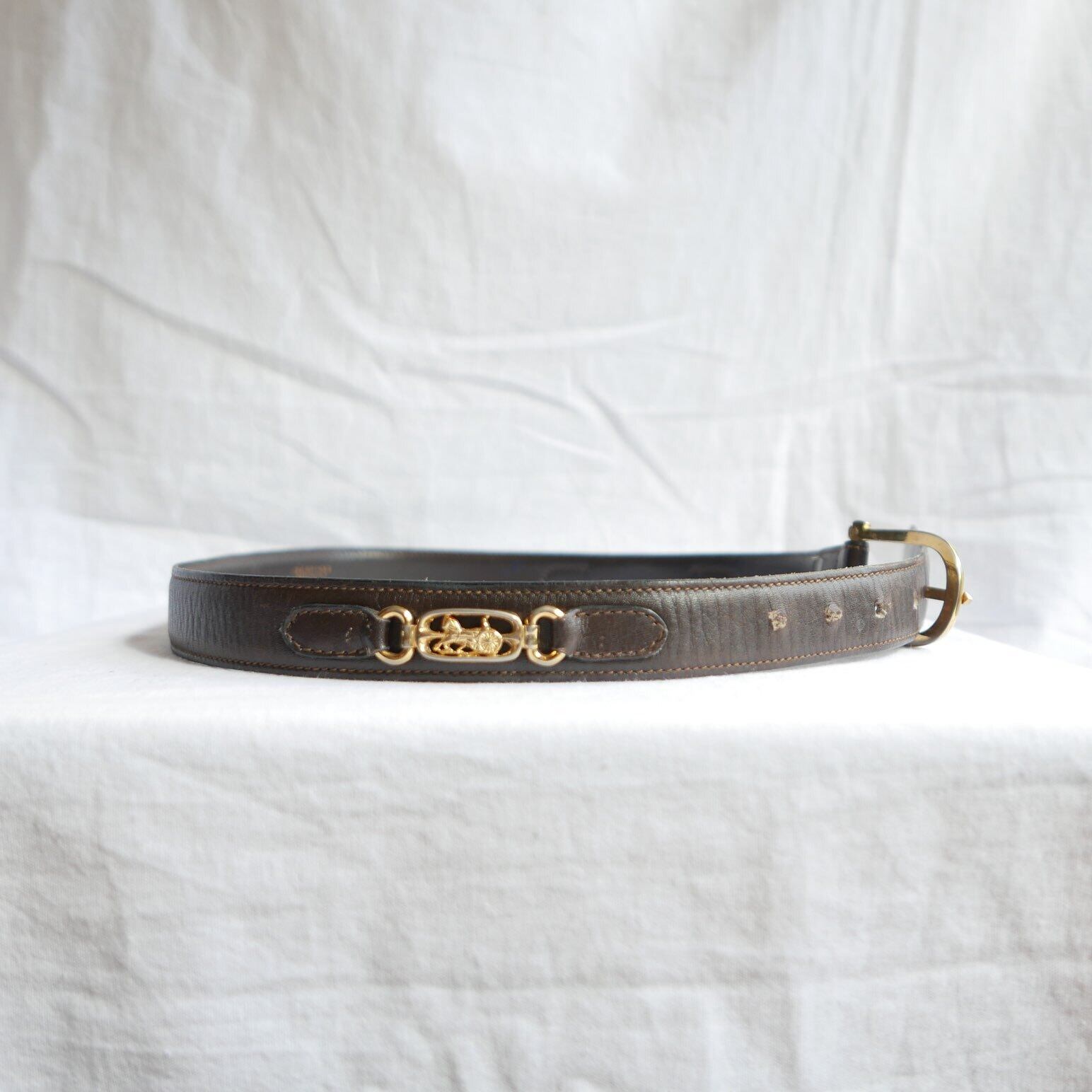 細いベルトにコンパクトに収まった馬車金具が映えるCELINE 80'sベルト!