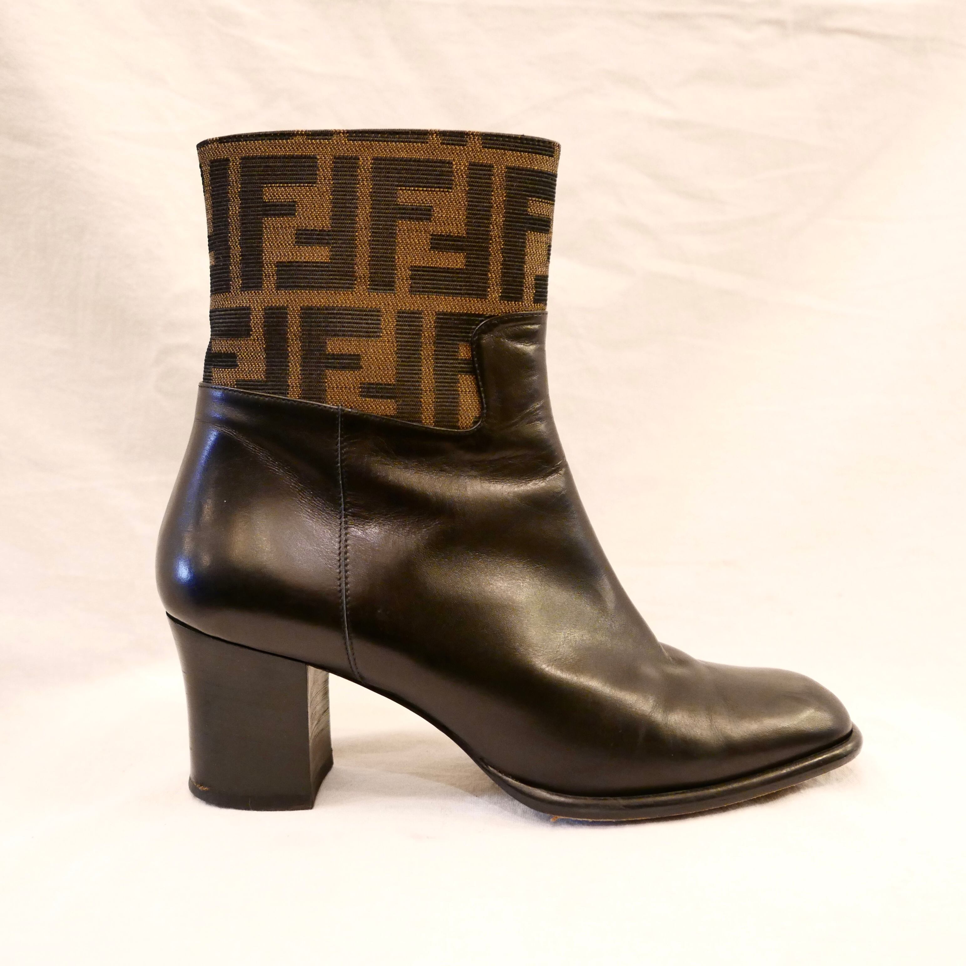 FENDI "Zucca" Black Leather Boots