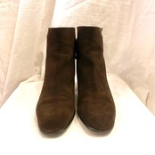 ブラウンスエードのやわらかい雰囲気に、銅器のようなヒール部分が攻めたカッコよさ!