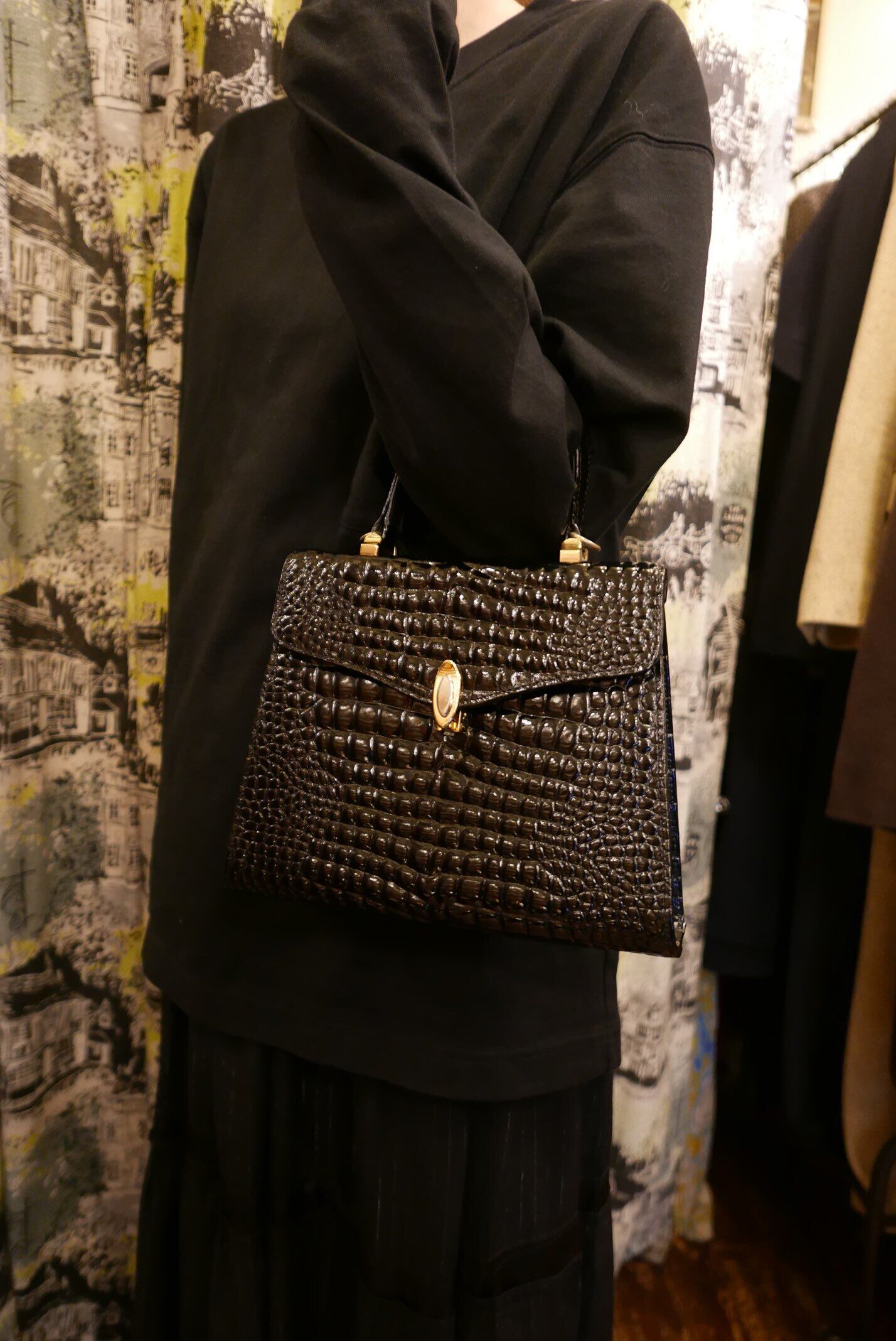 クロコのような型押し加工のレザーが高級感溢れる2-Way bag!