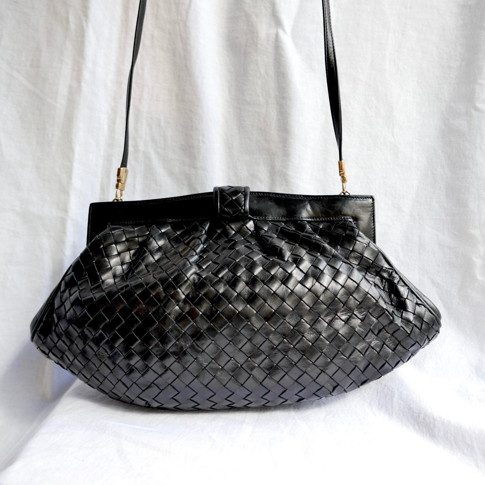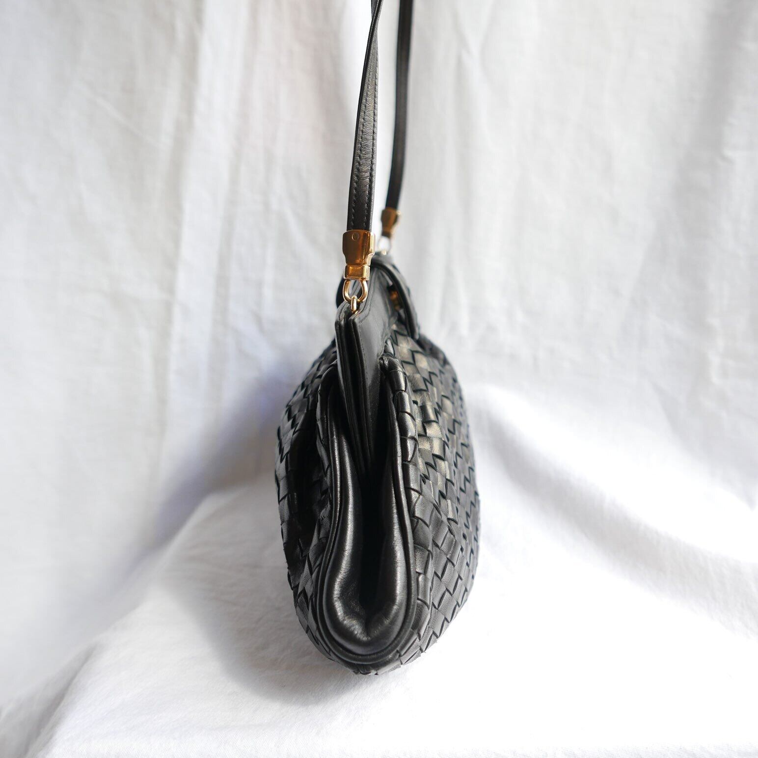 French intrecciato "Black Leather" Shoulder Bag 2way
