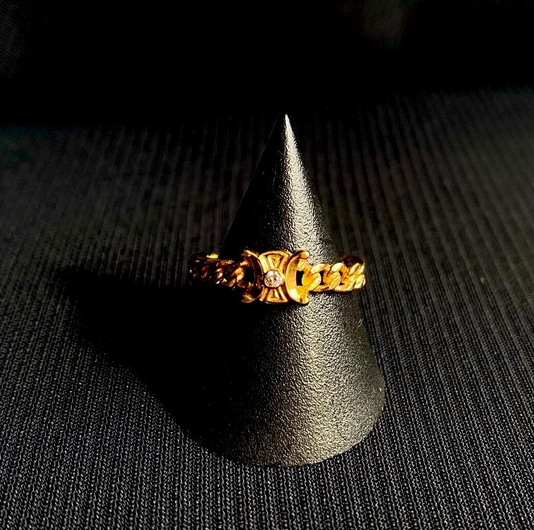 CELINE "K18×Diamond" "Macadam-Logo" Chain Belt RIng